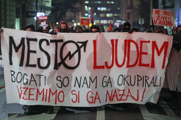 Par sto ljudi je drugo obletnico izselitve včeraj pospremilo s protestom – protestniki so se iz parka Tabor sprehodili mimo RTV Slovenija prek Slovenske ceste in Tromostovja do Mestne hiše in od tam do Roga, kjer so poskušali odpreti vrata na dvorišče novonastajajočega ustvarjalno-kulturnega centra, a so jim to preprečili policisti.