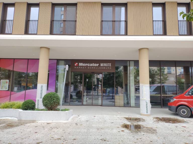 A kot nakazuje tabla, tu ne bo šlo za običajen Mercator, ponudba naj bi bila podobna kot v Mercatorju v Maximarketu. Imenuje se Market Schellenburg, kdaj natančno bo odprta, pa še ni znano.