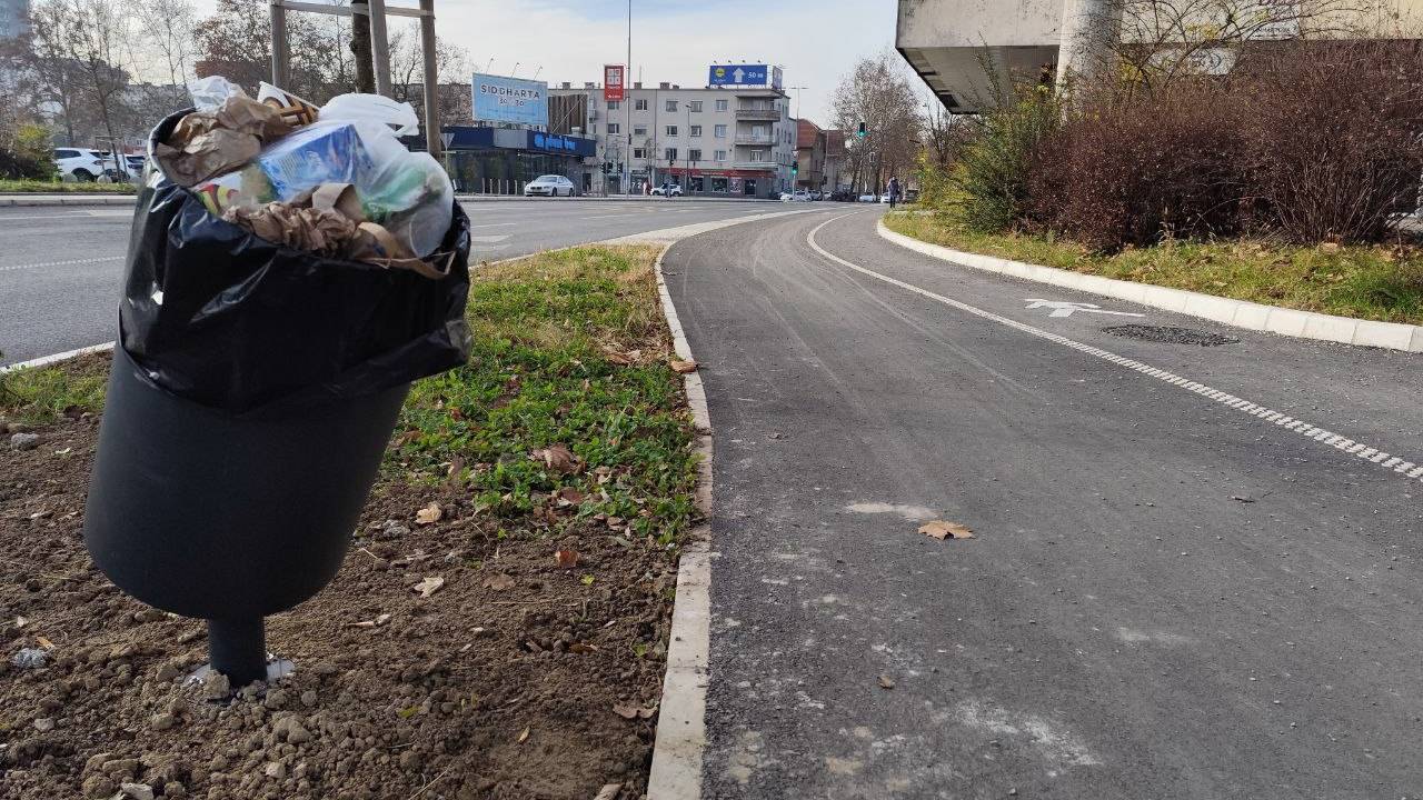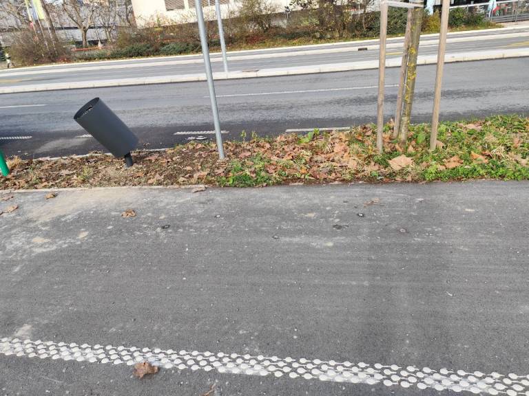 Ta se sicer že dolgo obnavlja, a na prenovljenem delu so kolesarji opazili novost, pešci pa so se spraševali, za kaj gre. Koš za smeti je namreč nagnjen.