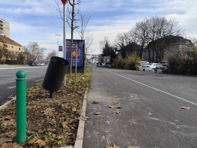 Na prenovljenem delu Linhartove ceste sta nagnjena koša postavljena na obeh straneh kolesarskih stez.
