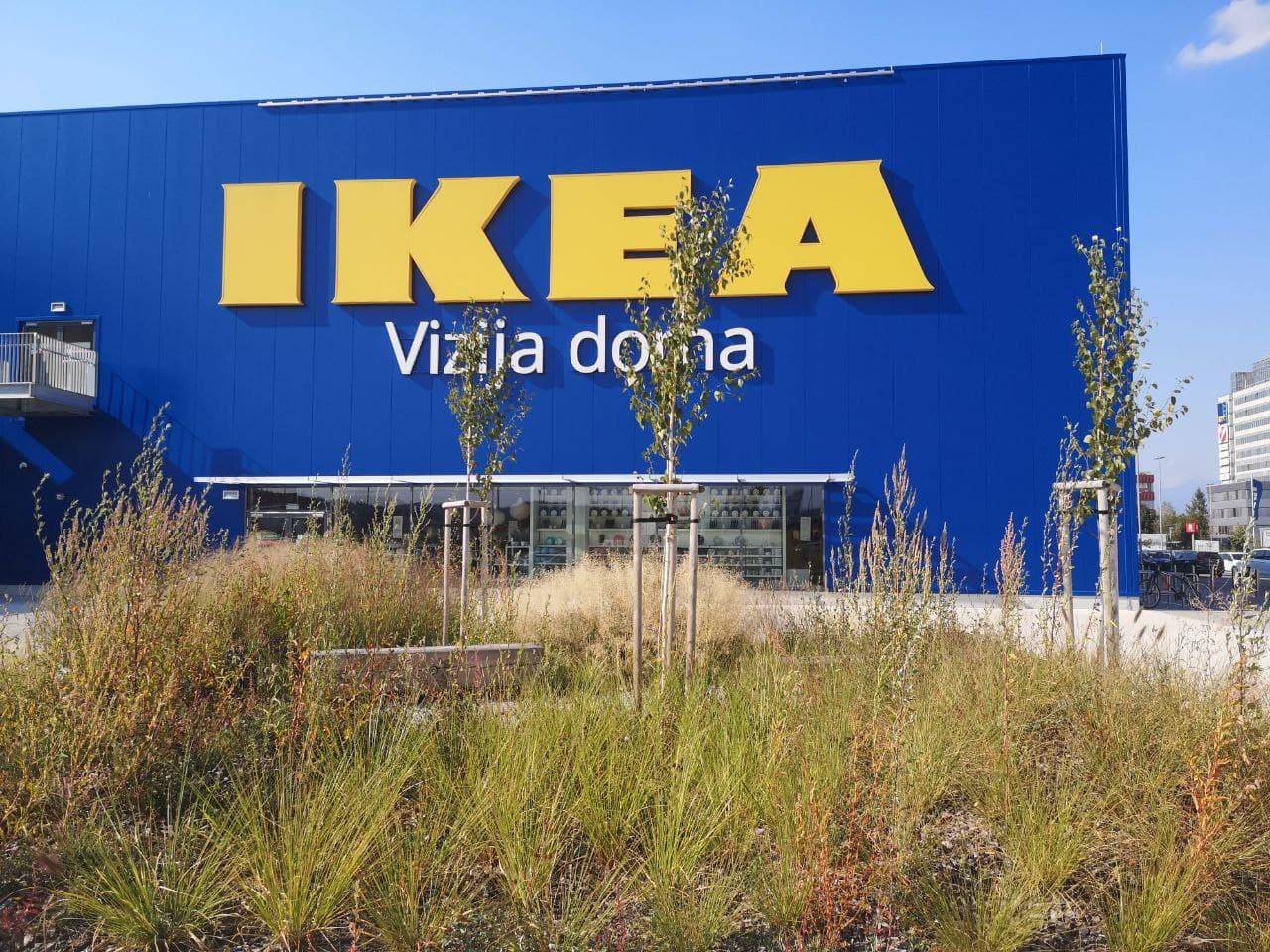 Posajena drevesa na parkirišču pred Ikeo so del trajnostnega načrta, ki pa se ni odvil tako, kot je bilo predvideno.