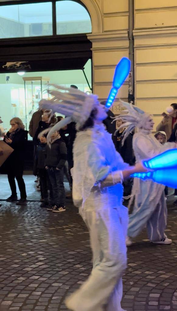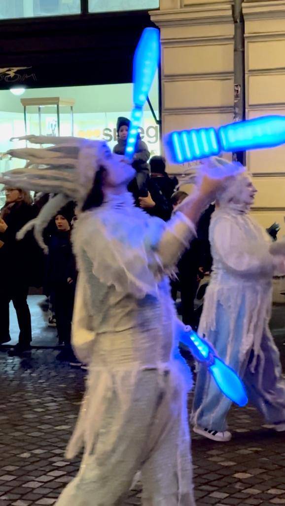 Dedka Mraza spremljajo snežaki, medvedi, zajci ter druga bitja iz ljudskih pripovedk in pravljic. Med potjo se ustavlja pred Mestno hišo ter na Prešernovem in Novem trgu.
