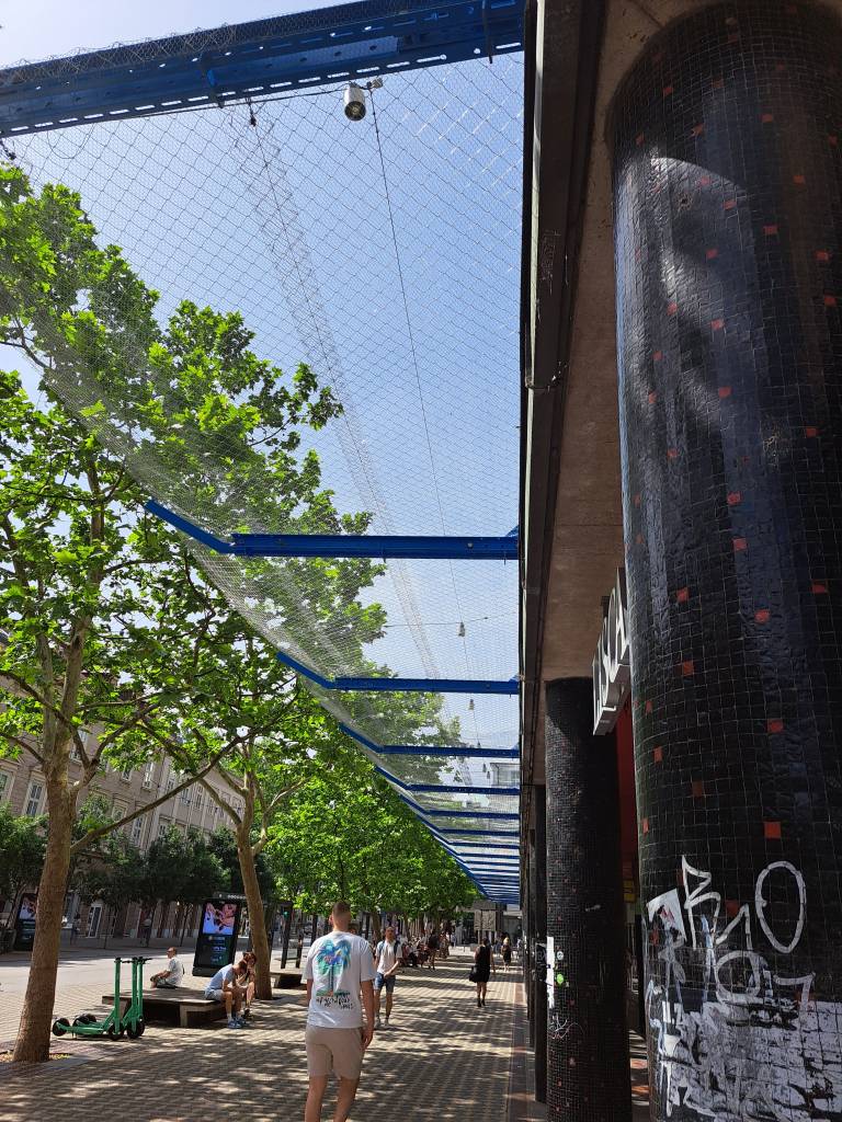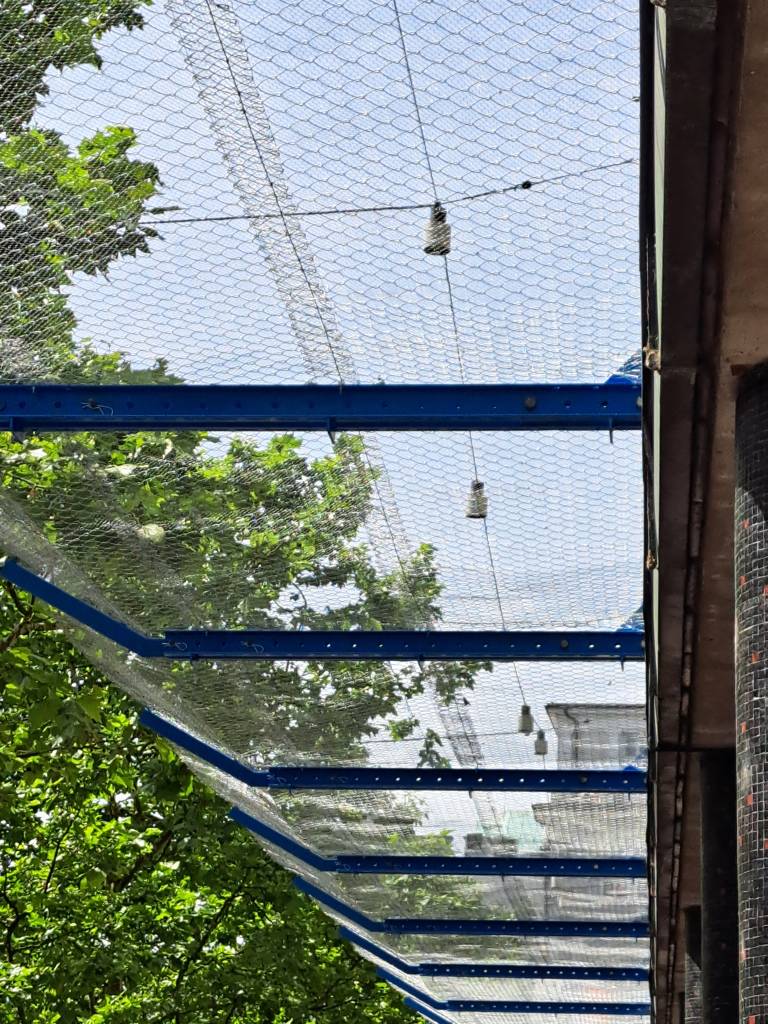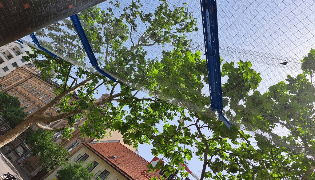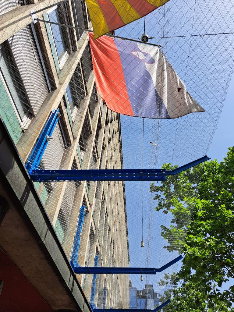 Na to so zdaj namestili nosilce in dvojno lovilno mrežo. Ta bo nameščena vsaj eno leto, je za N1 povedala direktorica družbe UPZ Nataša Kosmač, ki upravlja stavbo, gre pa le za začasno rešitev.