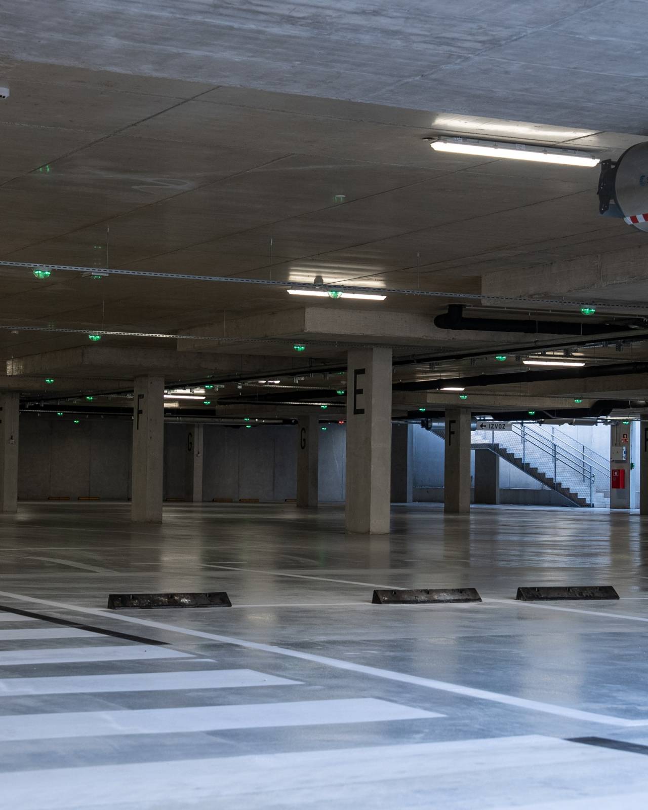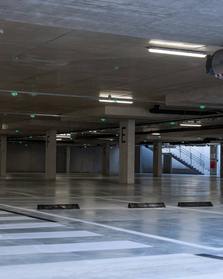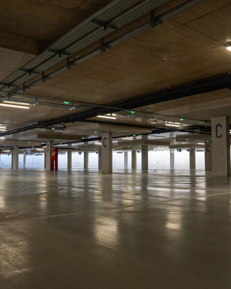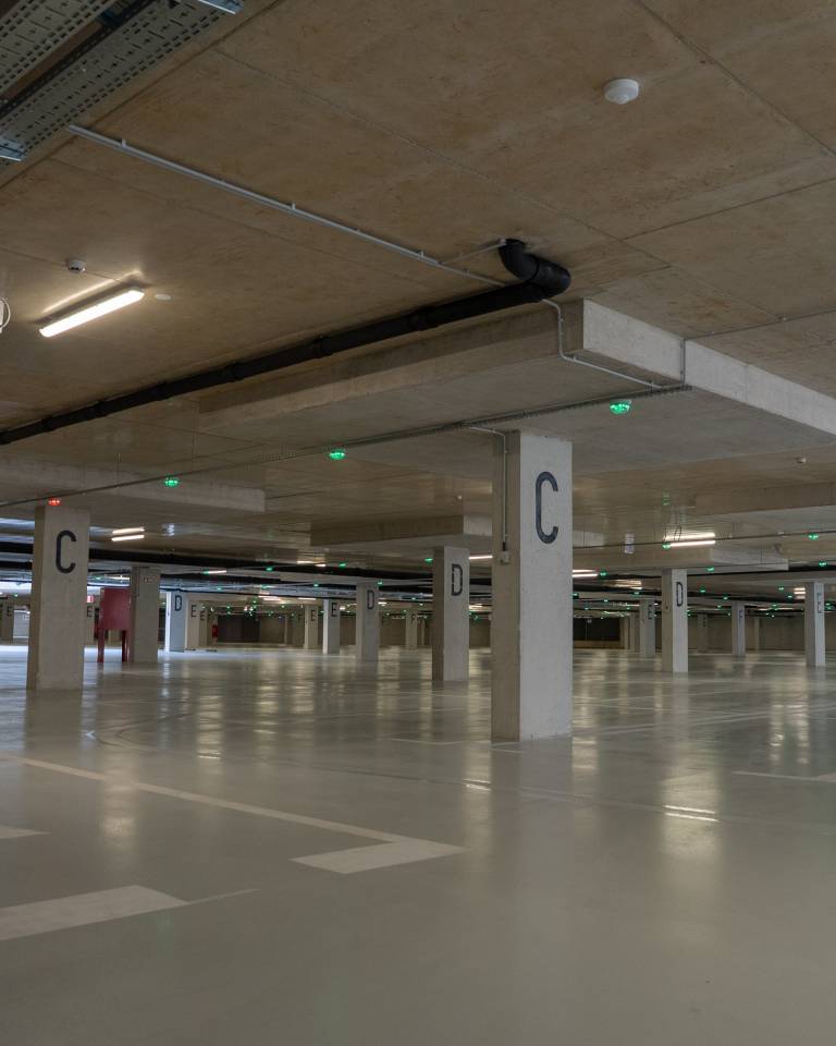 V parkirni hiši je 322 parkirnih mest, od katerih jih je 15 namenjenih gibalno oviranim osebam, 21 motornim kolesom, dve dostavi, šest za vozila, ki prevažajo otroke, ter šest polnjenju električnih vozil.