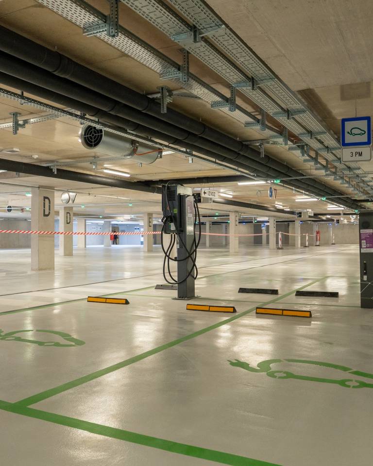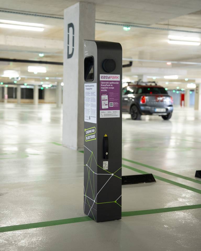 V parkirni hiši sta nameščeni dve A/C polnilnici, ki omogočata hkratno polnjenje štirih vozil in ena D/C polnilnica, ki omogoča hkratno polnjenje dveh vozil.