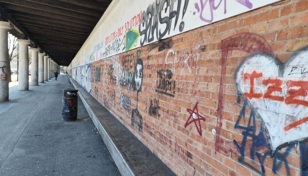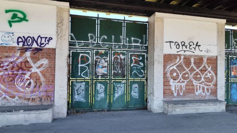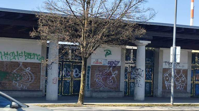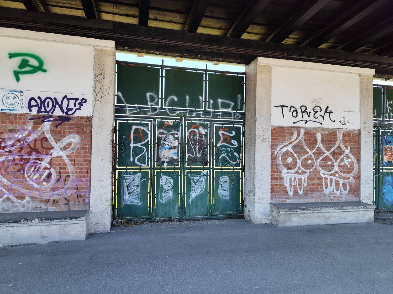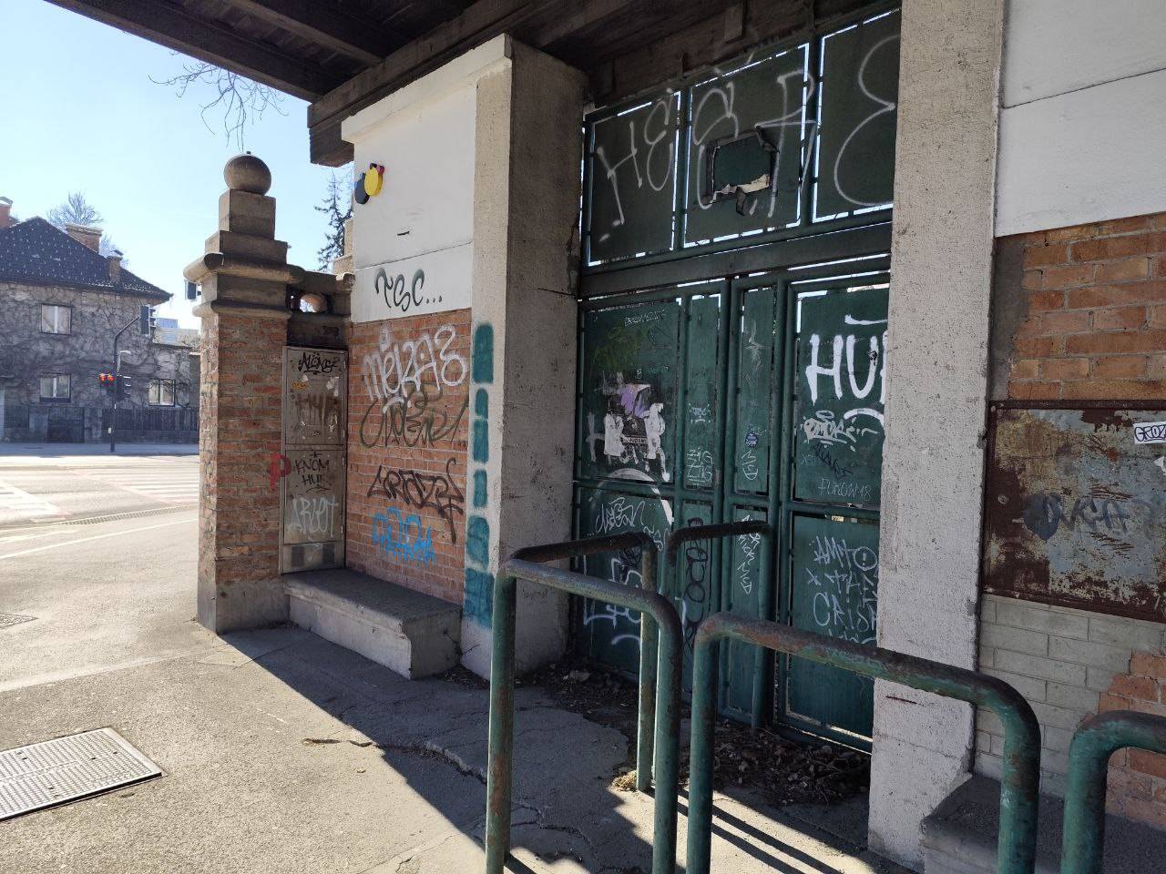 Zunanji zid pa je popolnoma pografitiran. Notranjost očitno propada.