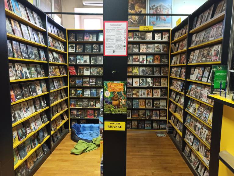 Za izposojo so na voljo filmi in glasba, DVD-ji in CD-ji, včasih je bilo možno dobiti tudi kasete.