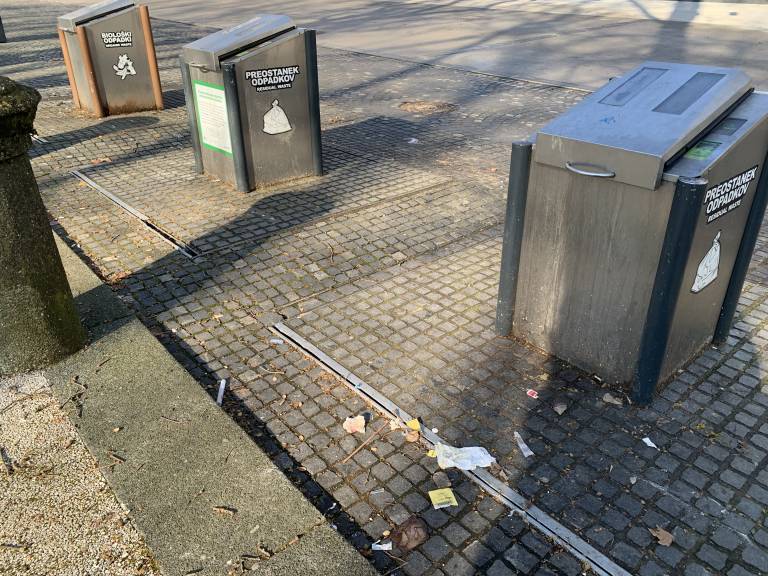 »Prosim za temeljito čiščenje okolice podzemnih zabojnikov za smeti. Prosim tudi za zamenjavo podzemnih zabojnikov za lažjo in varno uporabi le teh. Zabojnika za plastiko in papir imata premajhno odprtino, loputa pa te udari po roki, ko odlagaš odpadke in te poškoduje (krvave poškodbe roke). Predlagam podzemne zabojnike na nožno uporabo,« je zapisal občan in priložil tudi fotografijo stanja na terenu.