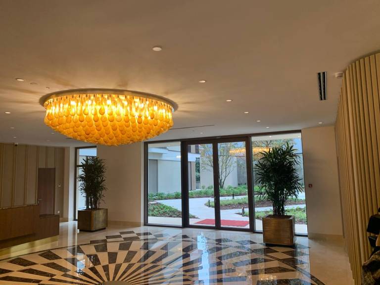 Palača skuša svoje ime opravičiti že takoj pri vratih za vstop v stavbo. Najprej nas pričaka pogled na grandiozno okrašeno sprejemno avlo, ki obiskovalcu daje občutek, kot bi vstopil v petzvezdični hotel.