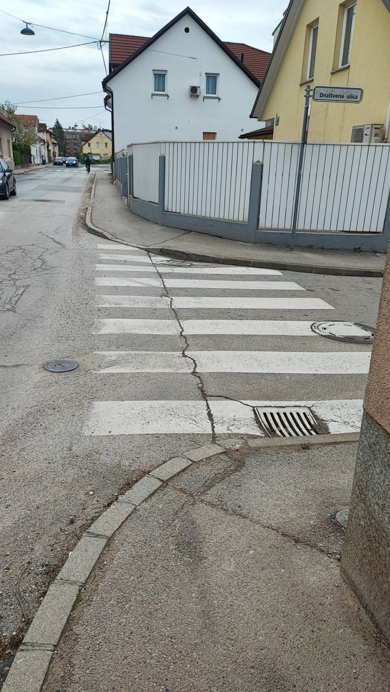 Domačin poroča, da je nedavno na koncu Društvene ulice opazil starejšo gospo na invalidskem vozičku, ki je imela težave pri prečkanju prehoda za pešce, kjer ni klančine.