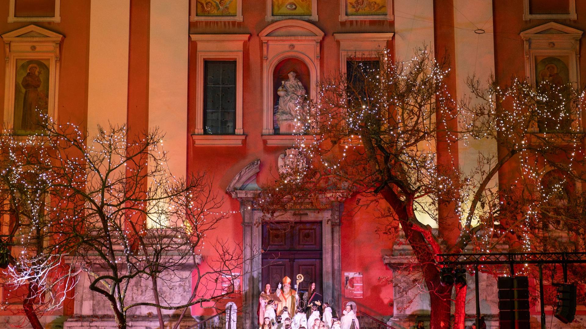 Na Krekovem trgu je Ljubljana dočakala prihod Miklavža, ki se je tradično pripeljal s tirno vzpenjačo, nato pa se z angelčki in parklji odpravil proti Prešernovemu trgu ter uradno odprl praznični december.
