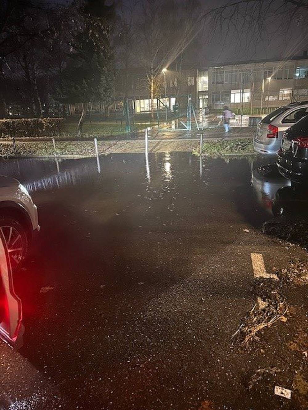 Kot opozarjajo, je vode do gležnjev, zaradi česar otroci ne morejo ubrati poti od parkirišča do šole. Dostop je tako možen le med drevesi po bankini med parkirišči.