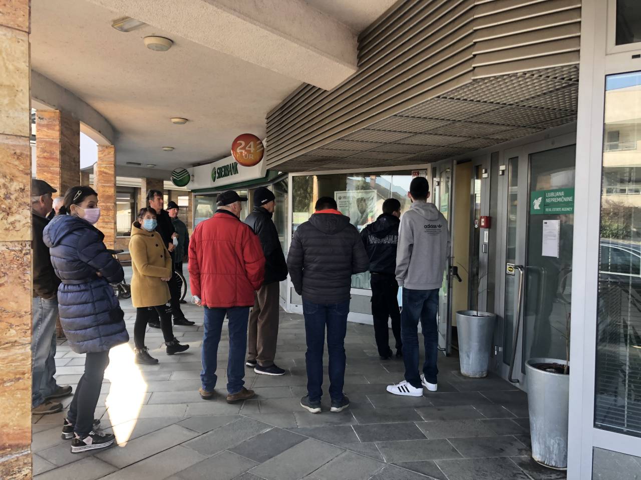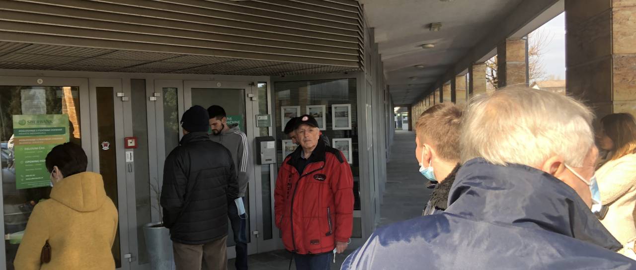 Preverili smo, kakšno je stanje na terenu. Pred poslovalnico Sberbank, natančneje na Cesti na brdo, se je nekaj po 10. uri zbralo več kot deset ljudi.