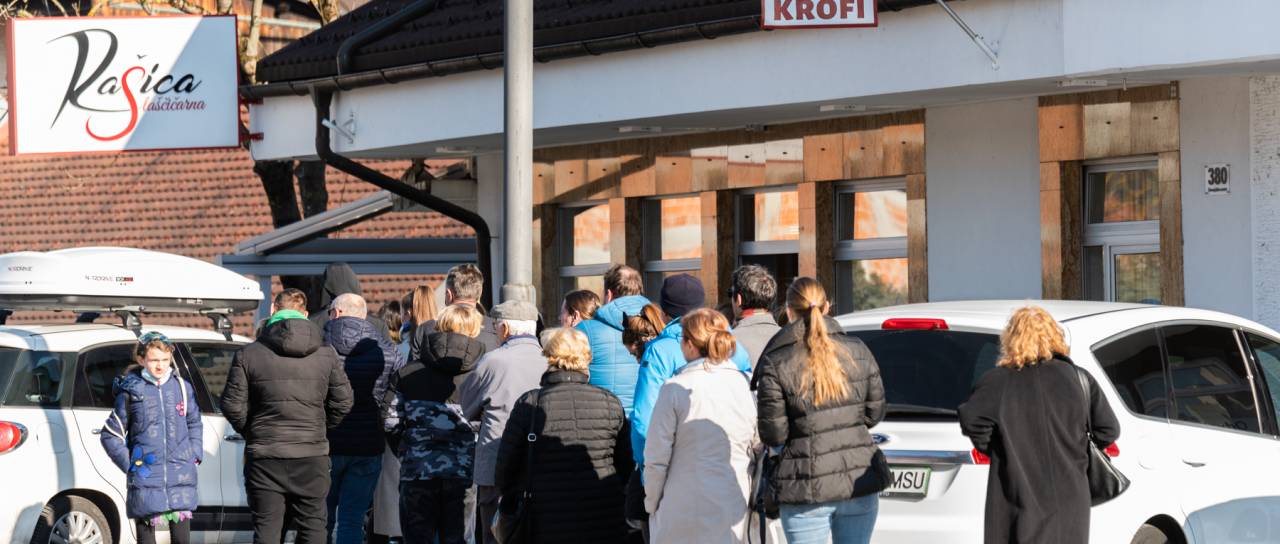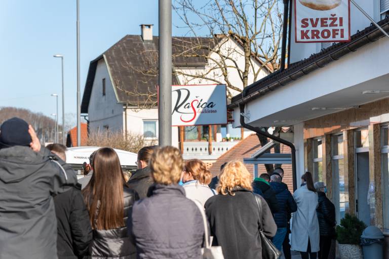 Pred slaščičarno Rašica v Črnučah se že ves teden vije dolga vrsta. Mnogi Ljubljančani se namreč prav tja najraje odpravijo po krofe.