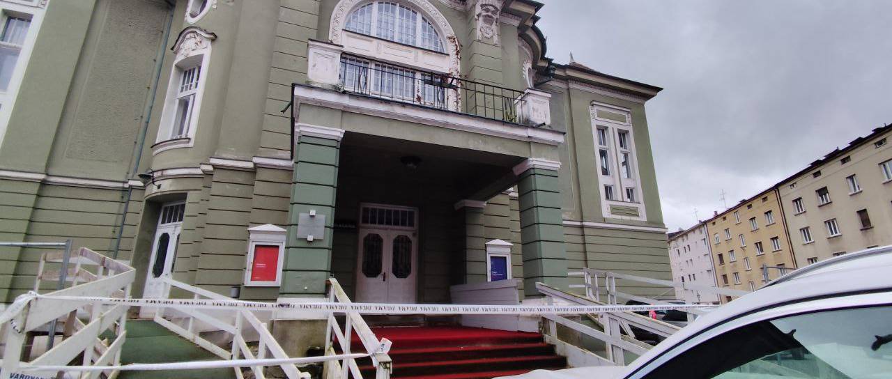 Na stopnicah vhoda je umazana in raztrgana rdeča preproga, spomin na čas, ko je stavba živela in gostila zvezde in gledalce.