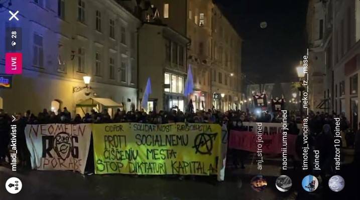 Predstavniki Avtonomne tovarne Rog so se, kot so napovedali, ob 18. uri podali na shod po mestu, da opozorijo in pokažejo, kako skupnostno zapolniti javni prostor in tako jasno izraziti, da mesto pripada ljudem, ne pa interesom kapitala.