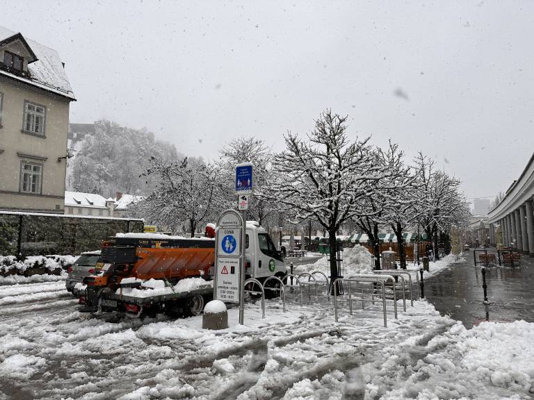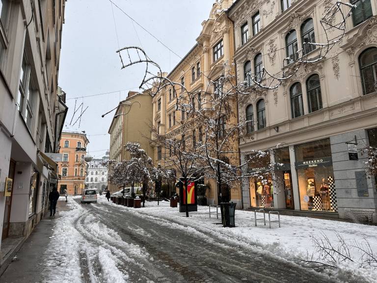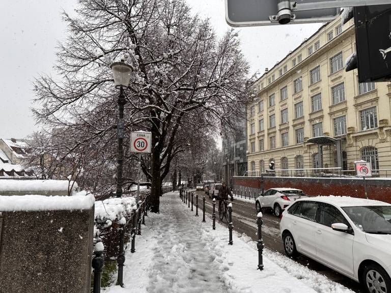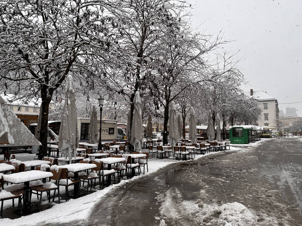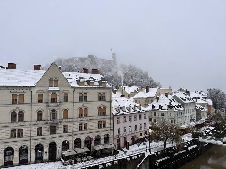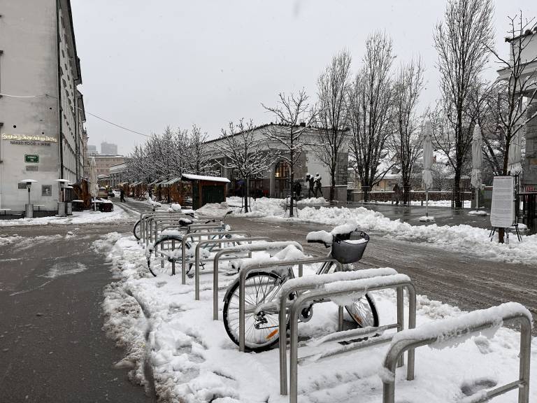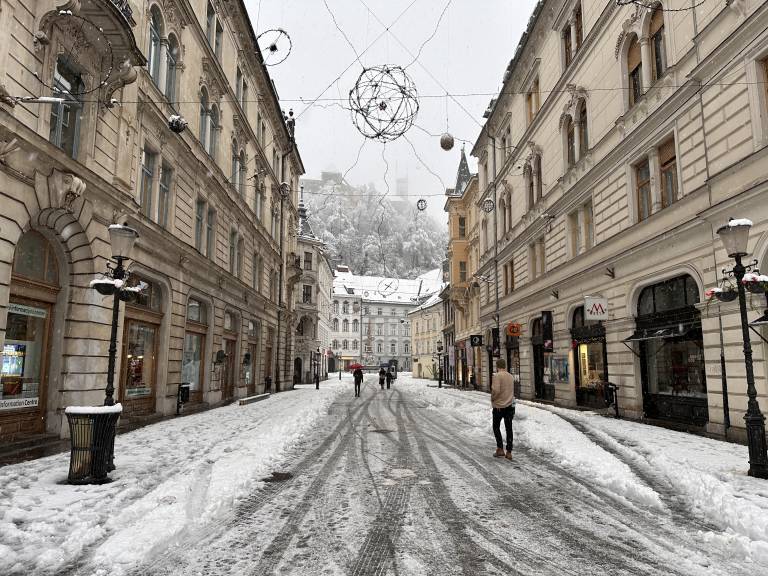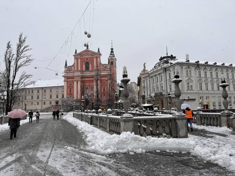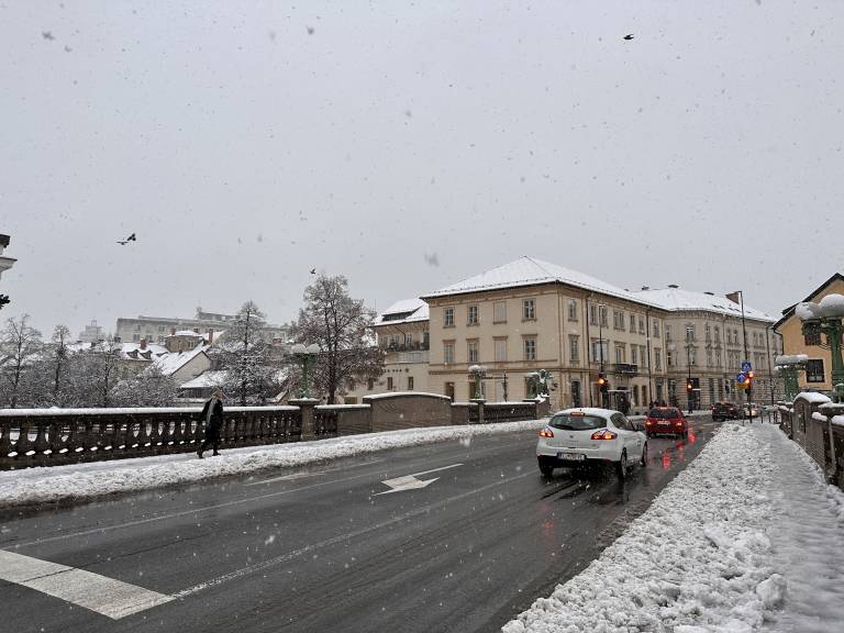 Ljubljana je sveže zasnežena! Prvih snežink smo se v prestolnici razveselili že ponoči, sneg pa še vedno po malem ustraja.