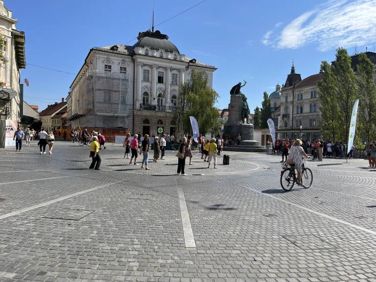 Sončen septembrski dan je na ljubljanske ulice privabil veliko število ljudi. Pestro je predvsem dogajanje na Prešernovem trgu.