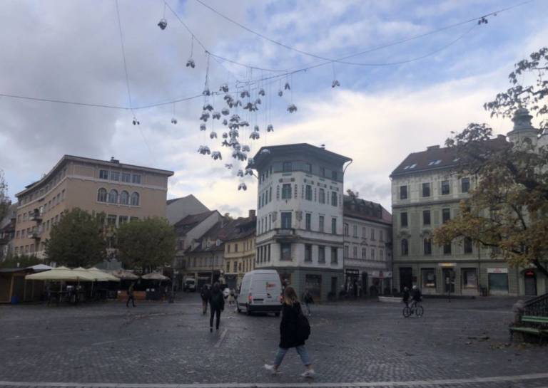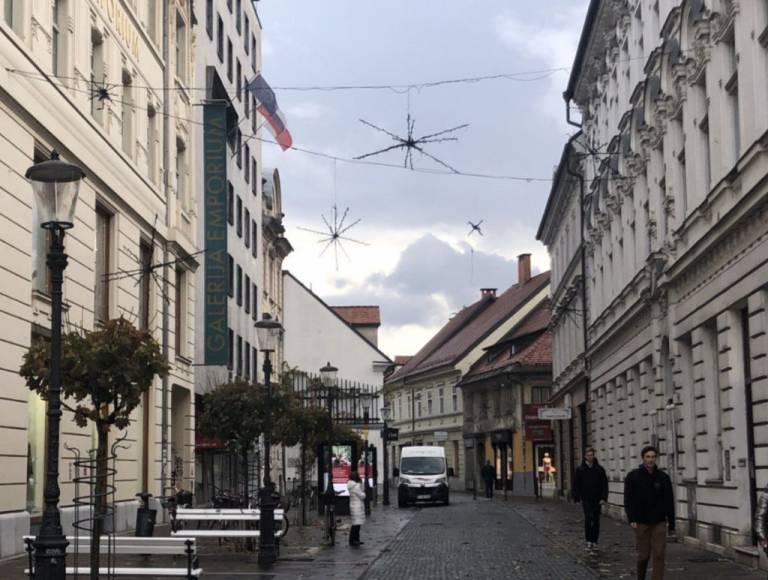 Nižje temperature s seboj hitro prinesejo tudi prve praznične okraske. V trgovinah lahko praznično obarvane izdelke kupimo že kar nekaj časa, zdaj pa se praznično vzdušje počasi začenja tudi na ulicah prestolnice.