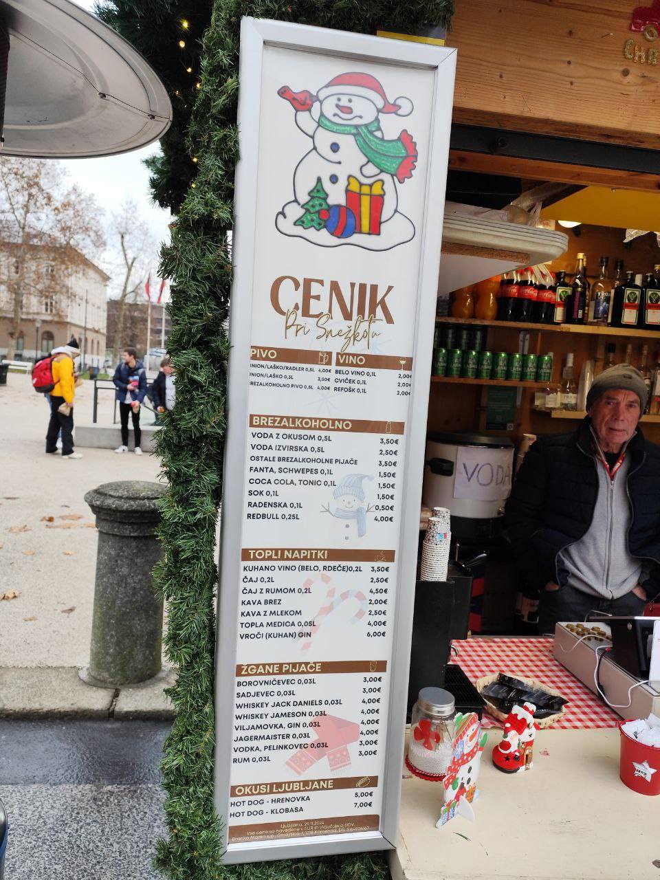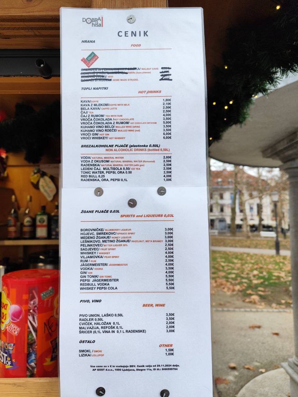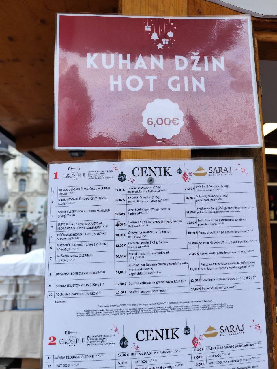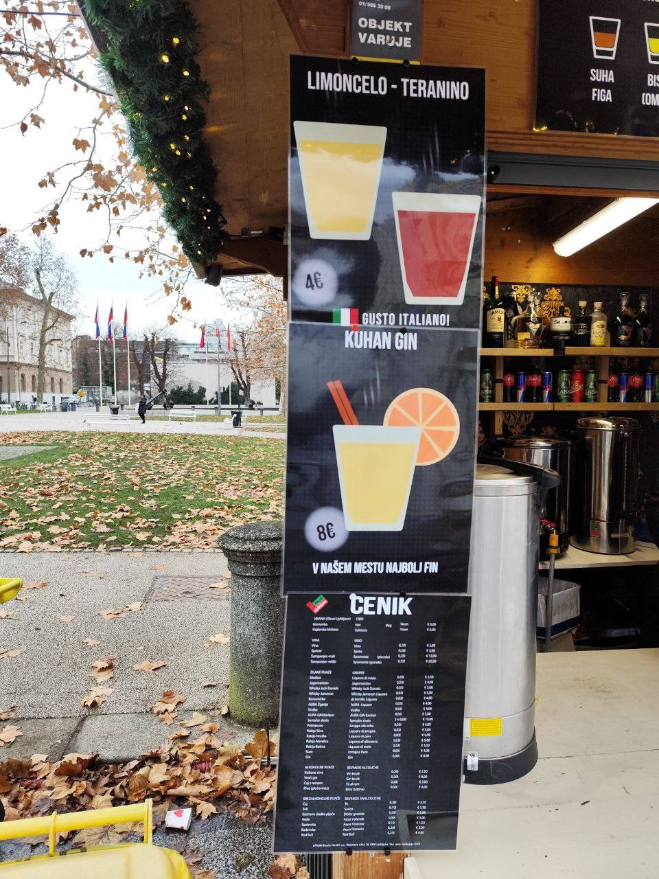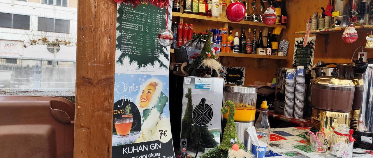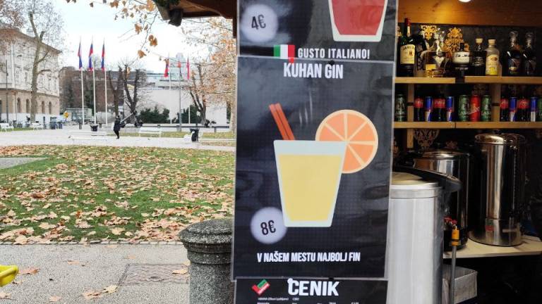 Cene so povsod podobne, razlikujejo se za kakšen evro ali dva gor ali dol: tako smo našli tudi kuhan gin za osem evrov.