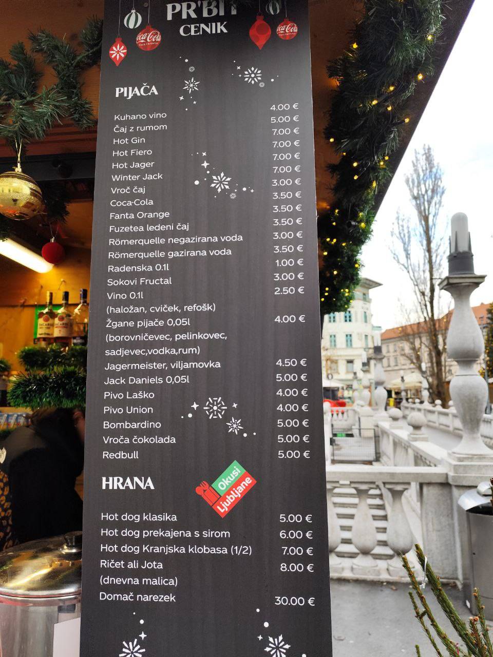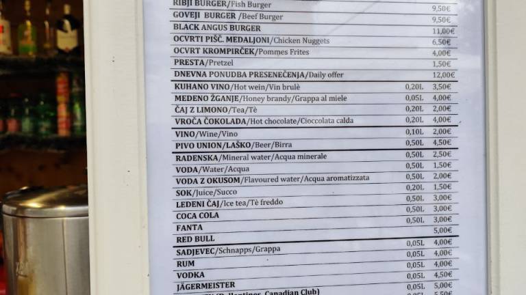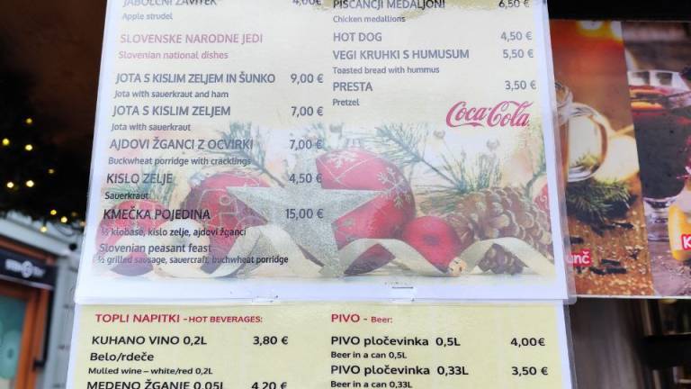 Za kuhano vino štiri evre, za žabje krake 12.