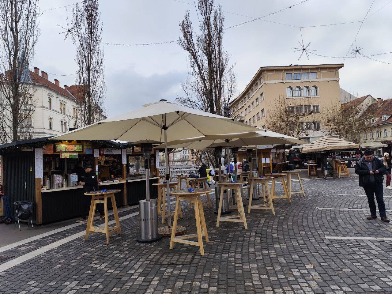 Zvečer so stojnice polne ljudi, domačinov in številnih turistov, ki so obiskali Ljubljano, menda tudi zaradi njene edinstvene okrasitve.