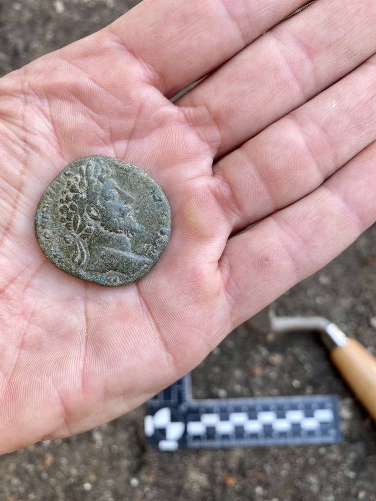 Posebej impresivna je tudi kar 14 metrov široka cesta s pločnikom. V sedimentih te ceste so našli tudi drobne osebne predmete, ki so jih pred stoletji izgubili prebivalci rimske Emone - zaponko za spenjanje oblačila, prstan, kovance in druge drobnarije.