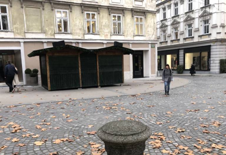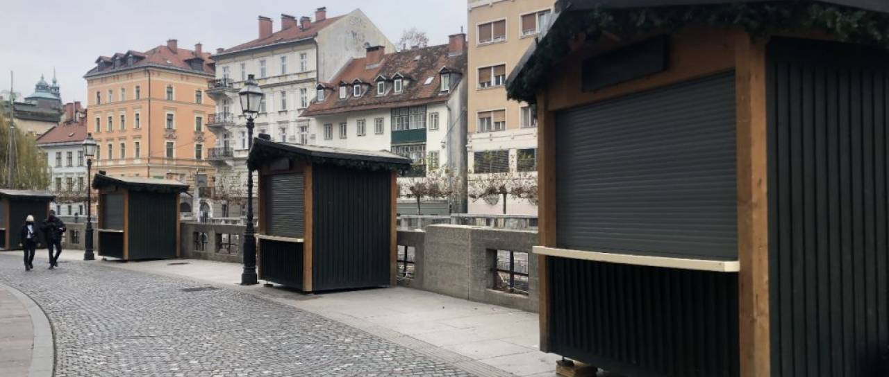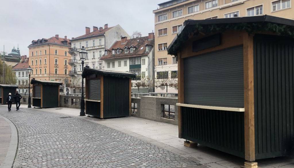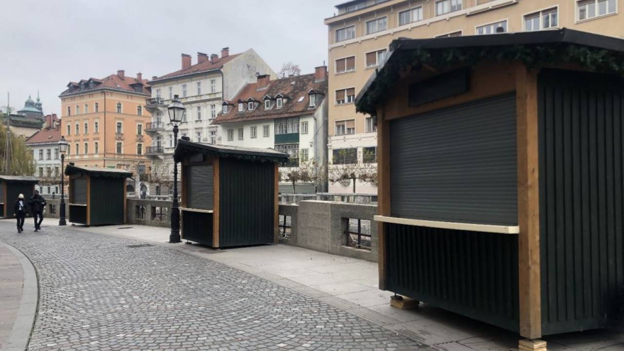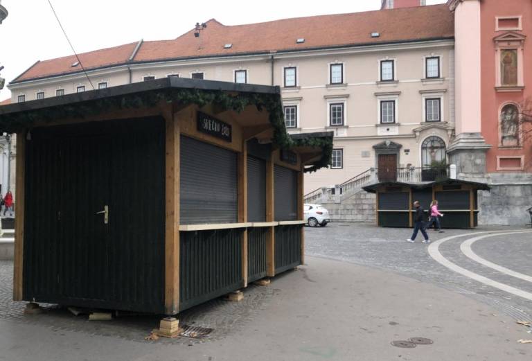 Lani so hišice, ki jih v prestolnici postavijo v okviru tradicionalnega božično-novoletnega sejma, zaradi epidemioloških razmer ostale pospravljene.