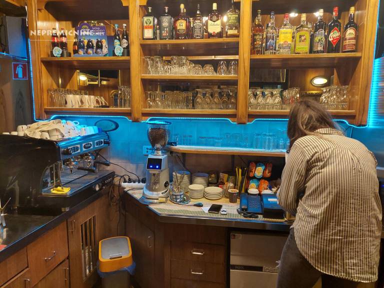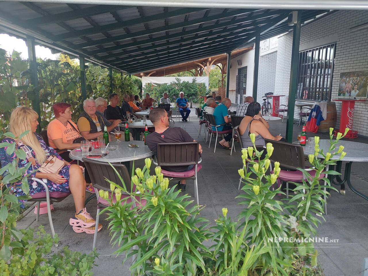 Notranji del ima 45 kvadratnih metrov površine, zunanji pokriti vrt pa 100 kvadratnih metrov površine, kar je dovolj vsaj za deset miz. Na vrtu raste tudi trta.
