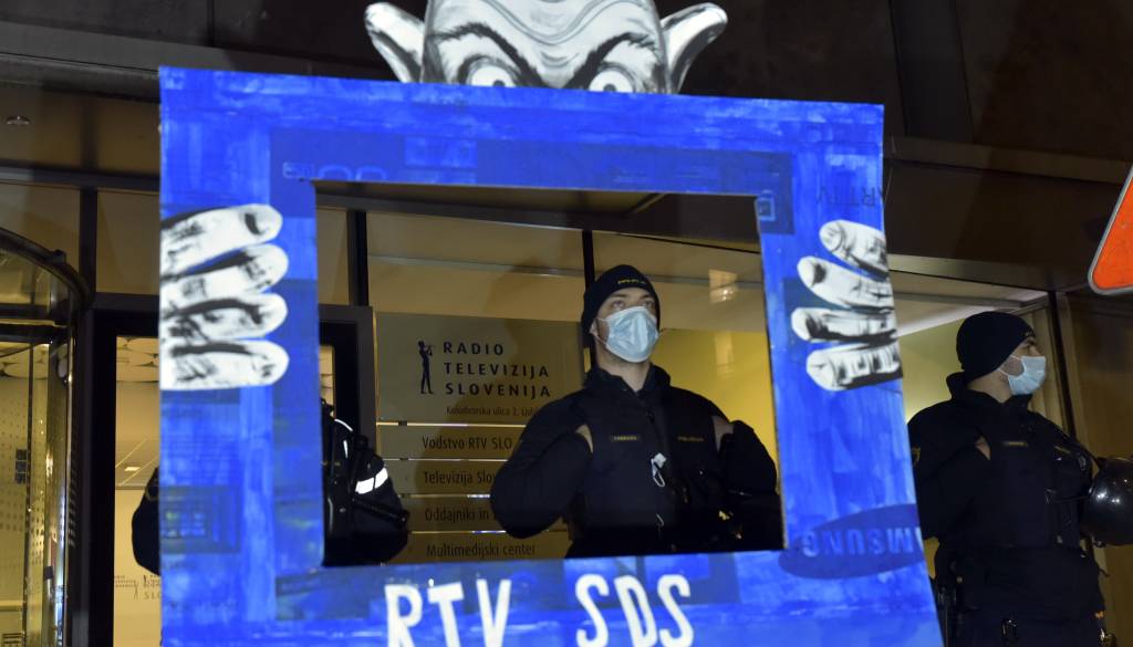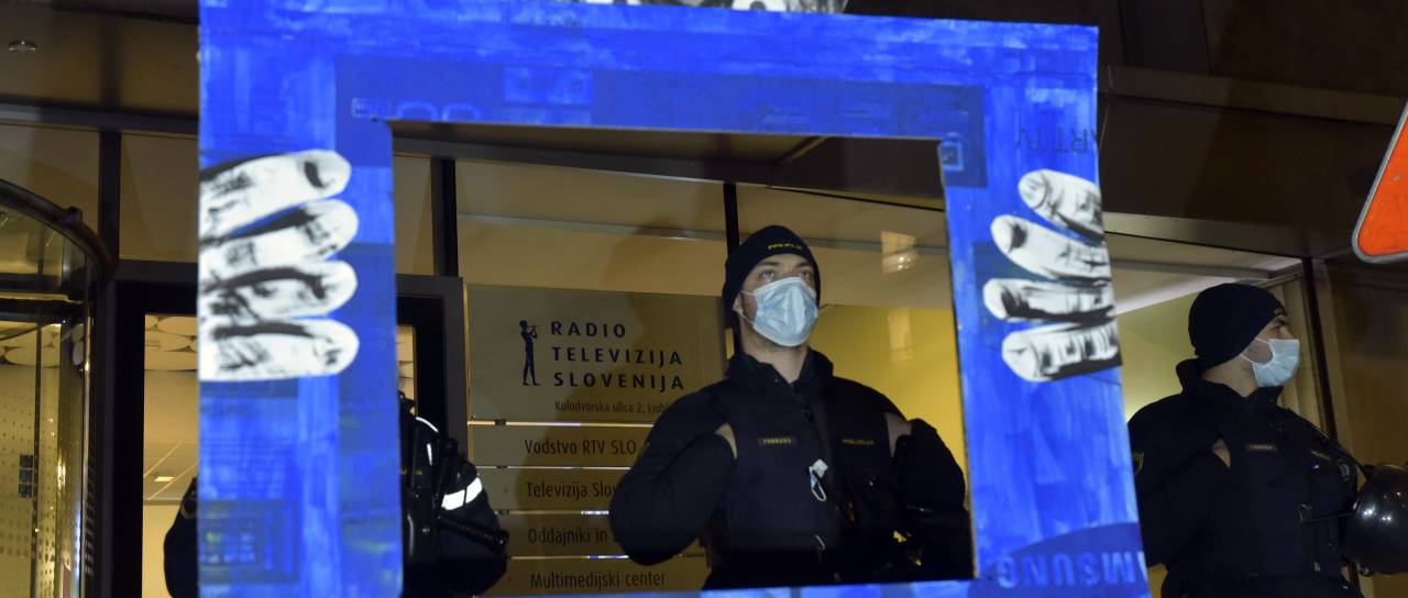 Tam so »odločno nasprotovali očitnemu podrejanju, politizaciji in razgradnji javne Radiotelevizije Slovenija, ki se stopnjuje iz tedna v teden, ter hkrati izvedli tudi simbolično protestno akcijo«, kot so pred protestom poročili iz Protestne ljudske skupščine Upor si.