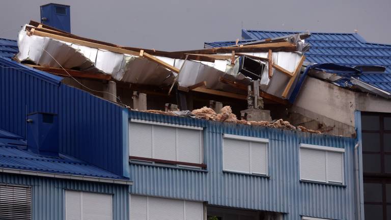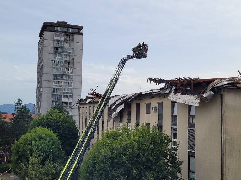Veter je podiral drevesa, podrl del gradbenega odra v središču mesta. V Fužinah je celo odpihnil del strehe iz bloka.