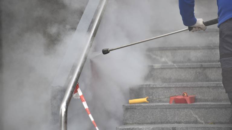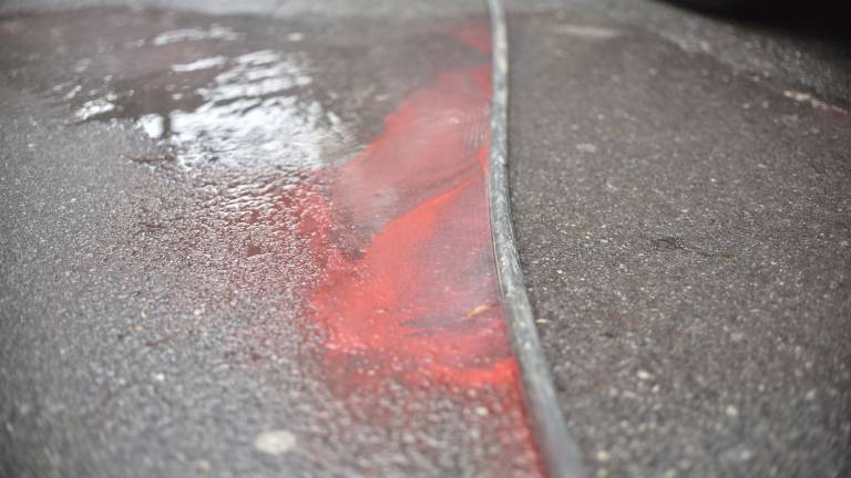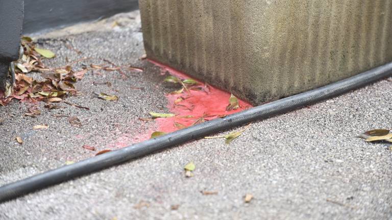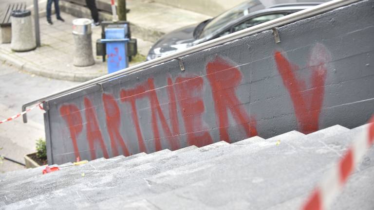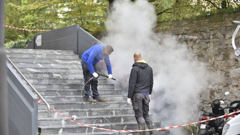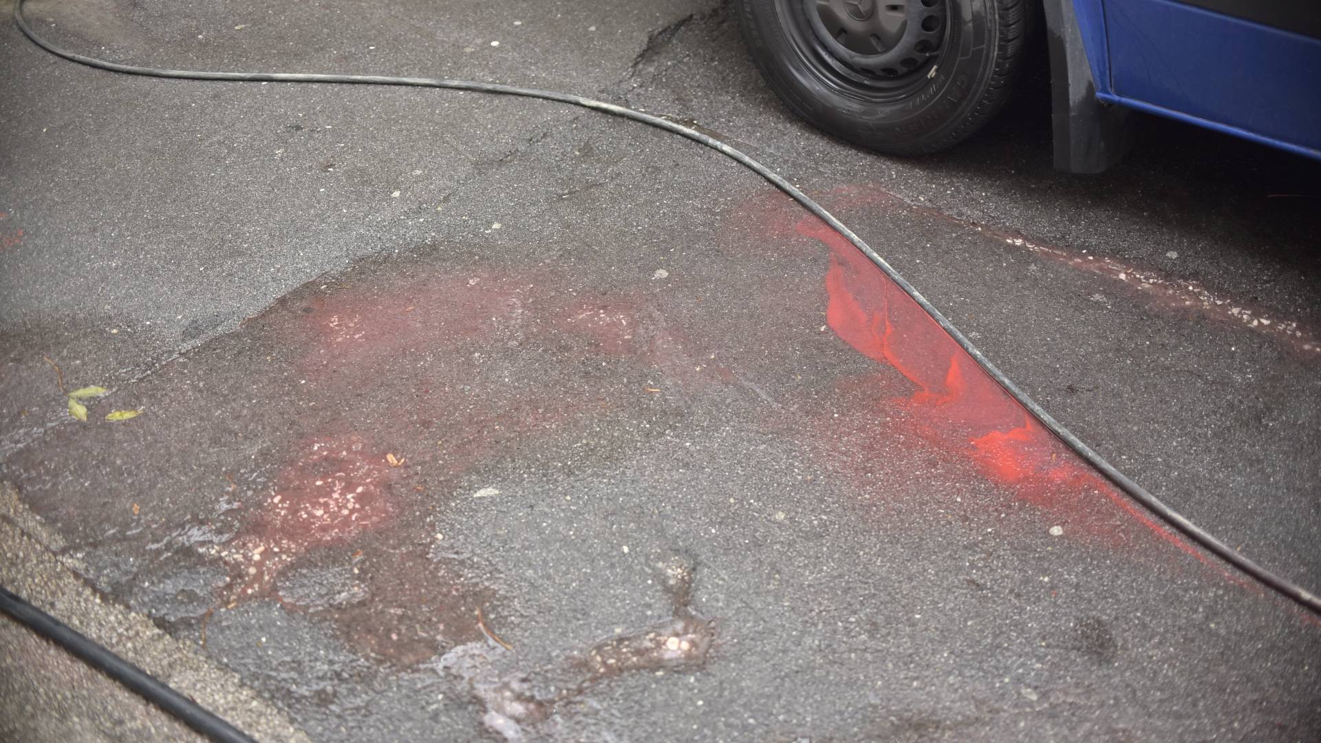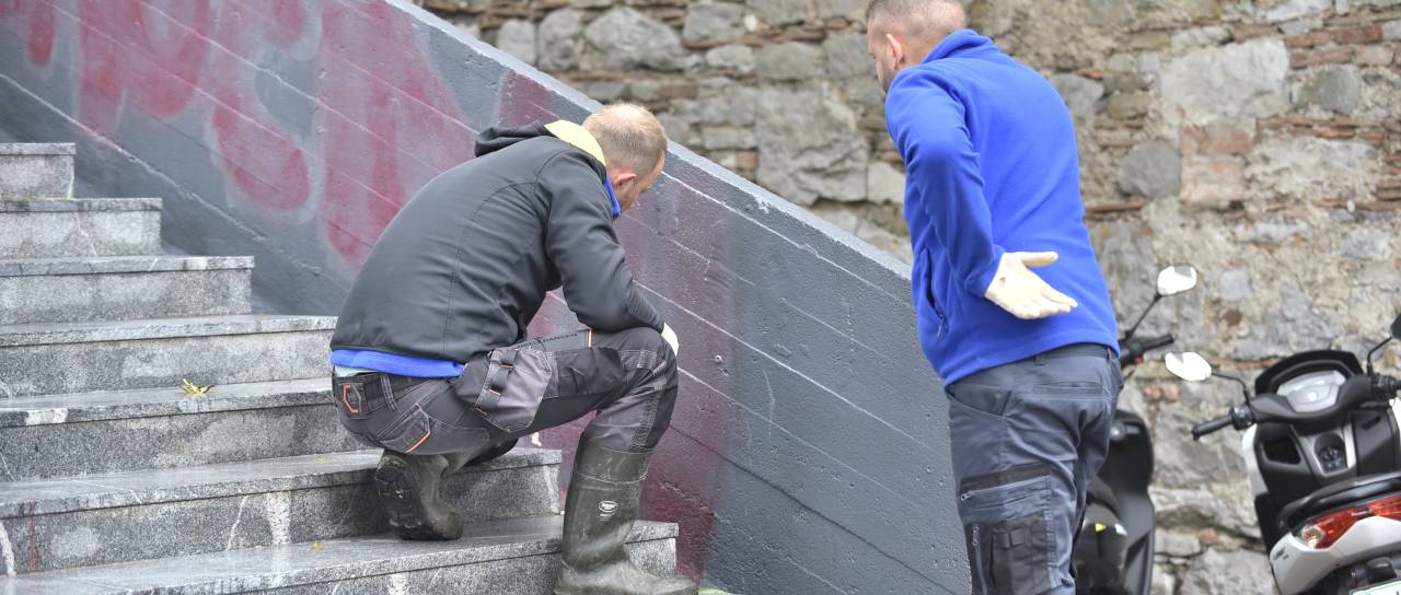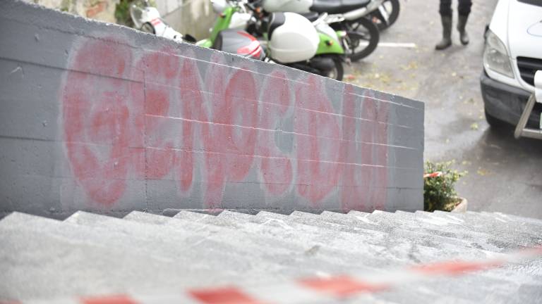 Na Fakulteti za strojništvo čistijo trdovratno rdečo barvo in napis 'partner genocidu' na stopnišču.