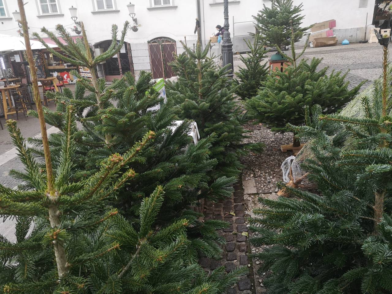 Če niste pristaš plastičnih drevesc, boste na tržnici zagotovo našli kaj zase. Cene za drevesca se gibljejo od 20 do sto evrov, cena pa je seveda odvisna od velikosti smrečice.