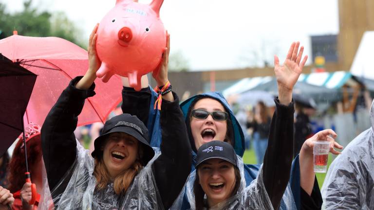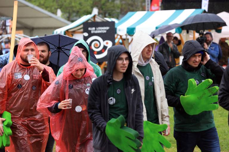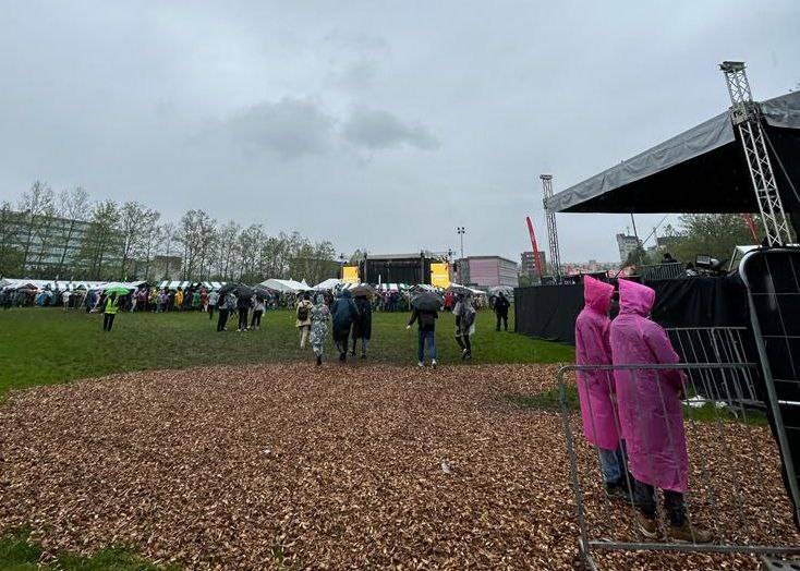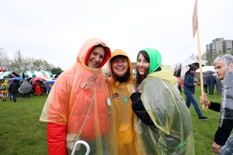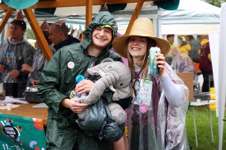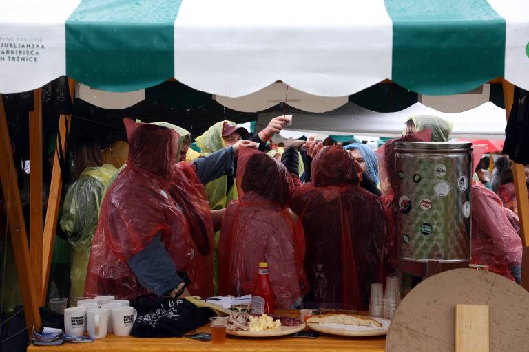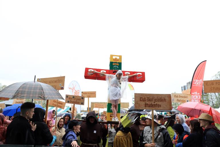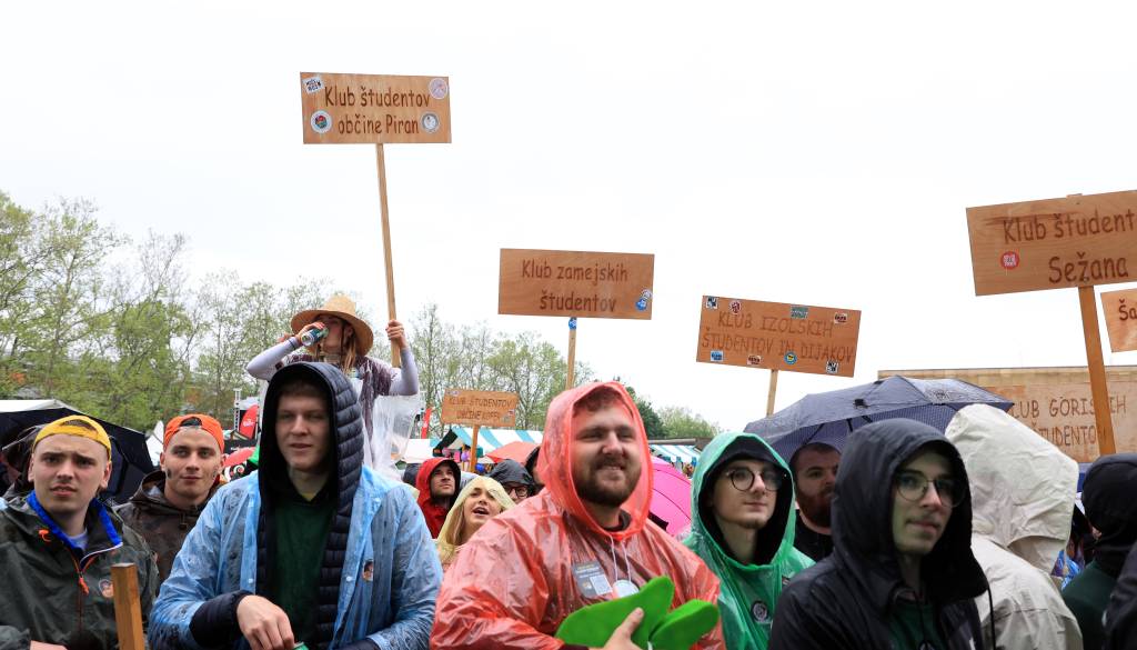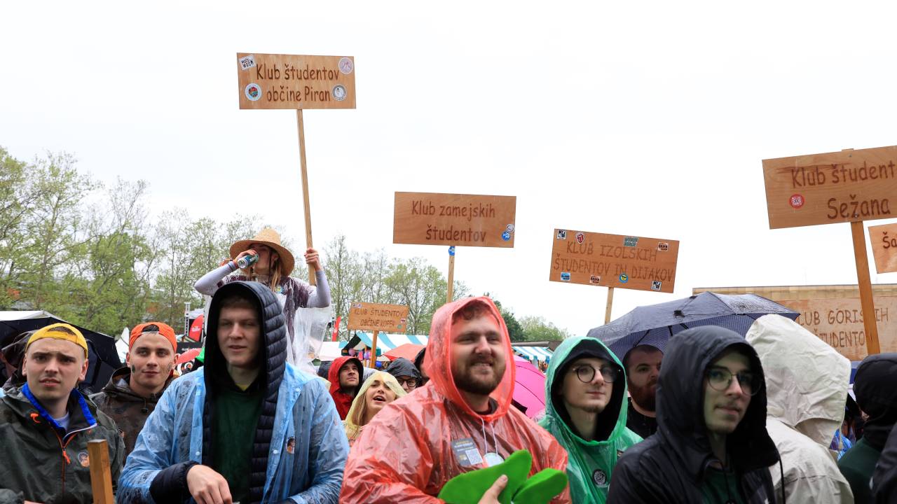 Ker jo je prireditvi zagodlo kislo vreme, pa si lahko študentje na lokaciji, pri info točki, priskrbijo tudi pelerine po nizki ceni.