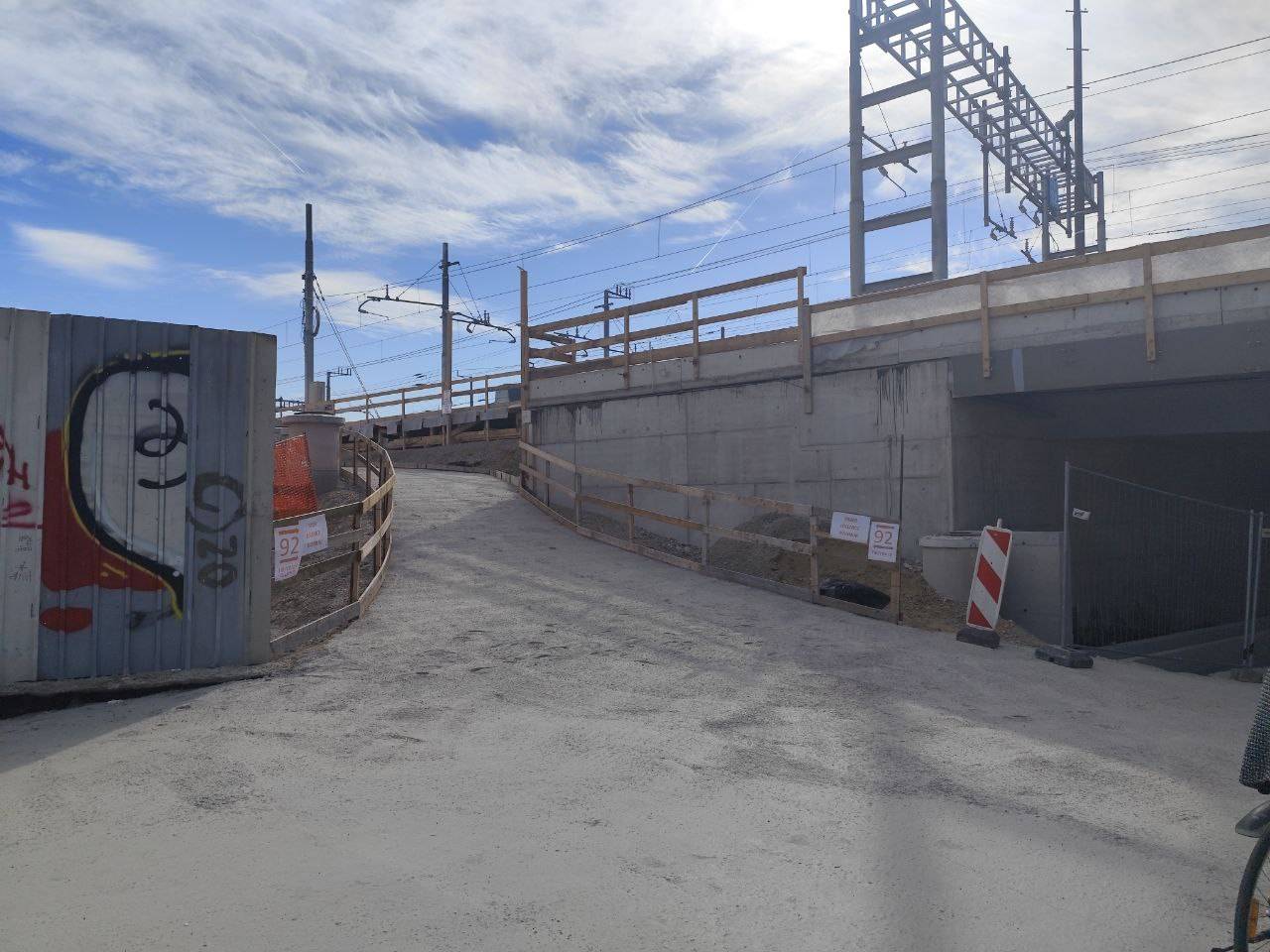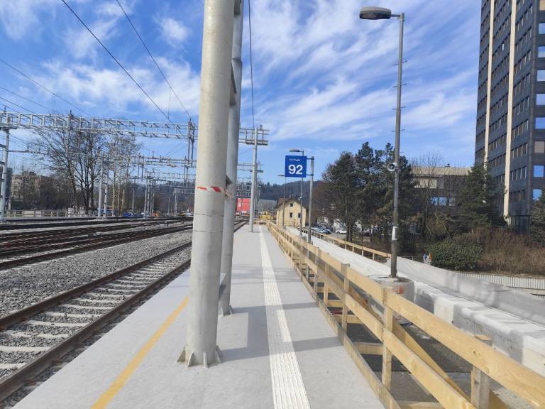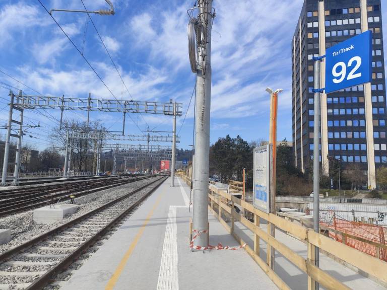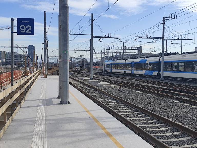 Nov začasni peron oziroma tir 92 je od glavne železniške postaje oddaljen dobrih deset minut hoje in je dostopen gibalno oviranim osebam in opremljen z informacijskimi tablami in smerokazi.