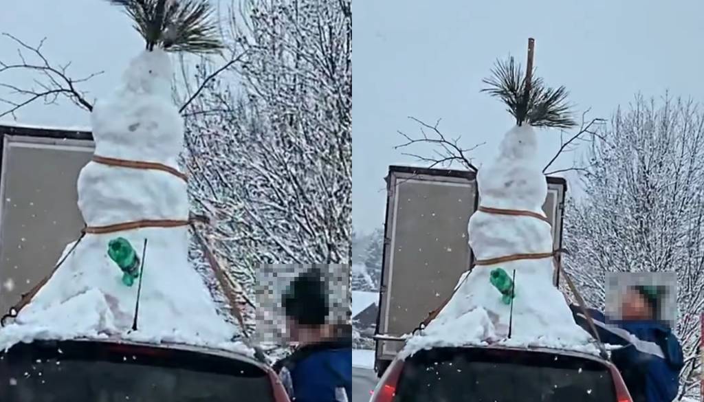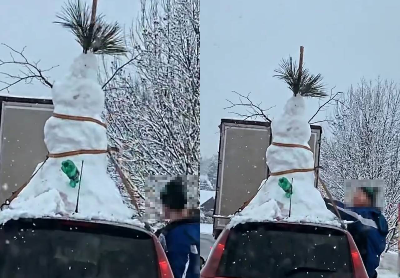 Prizor, ki ga zagotovo ne bi tako kmalu pozabili, če bi ga videli na cesti. Avtomobil s snežakom na strehi.