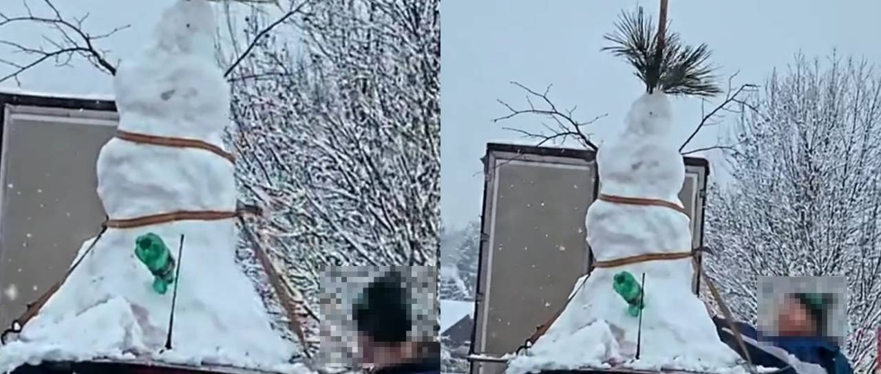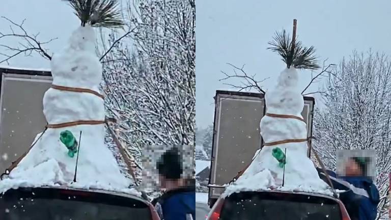 Kot kaže, se veseli Štajerci v navalu snežne ekstaze niso zadovoljili z 'navadnim' snežakom, ampak so veselega in debelega snežnega gospoda ustvarili kar na strehi avtomobila in ga nato celo zapeljali na izlet.