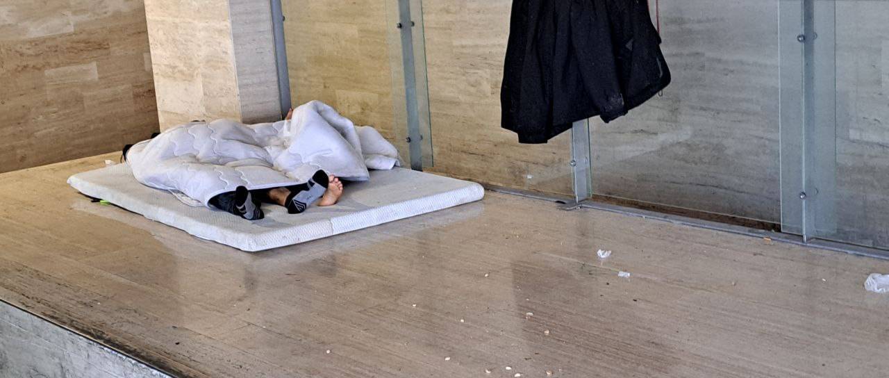 Kakorkoli že; kot rečeno, se živo srebro te dni ponoči ne vzpenja več tako visoko, zato so danes mimoidoči bili priča prizoru na fotografijah: osebama, spečima na žimnici in pokritima z odejo. Verjetno tudi ne zadnjič.