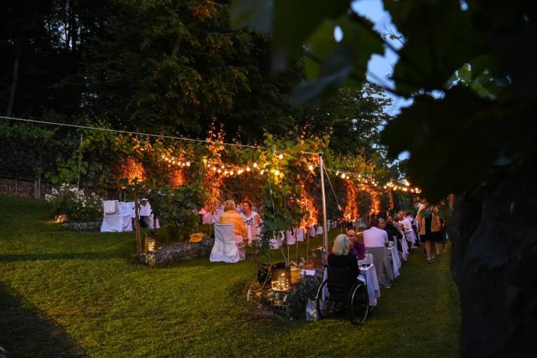 Tudi sicer je dogajanje v Grajskem vinogradu pestro, v njem se lahko celo poročite. Poleg tega pa se med poletnimi meseci trte spremenijo v stene romantične restavracije, v kateri lahko na prostem večerjate na dogodku v sodelovanju z restavracijo Strelec.