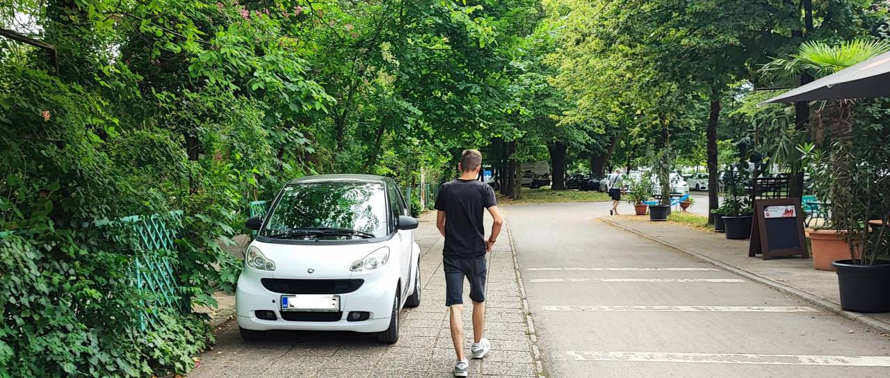 Sprehajalna pot je kar 'okupirana', včasih bolj z avtomobili kot s pešci.