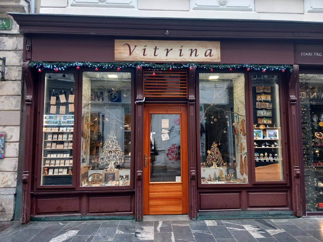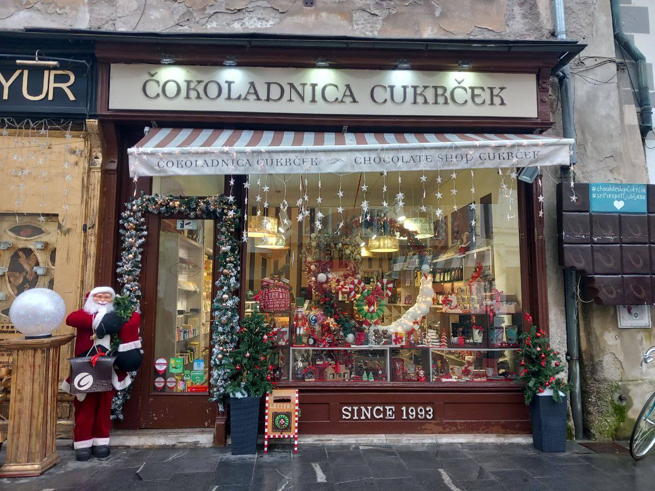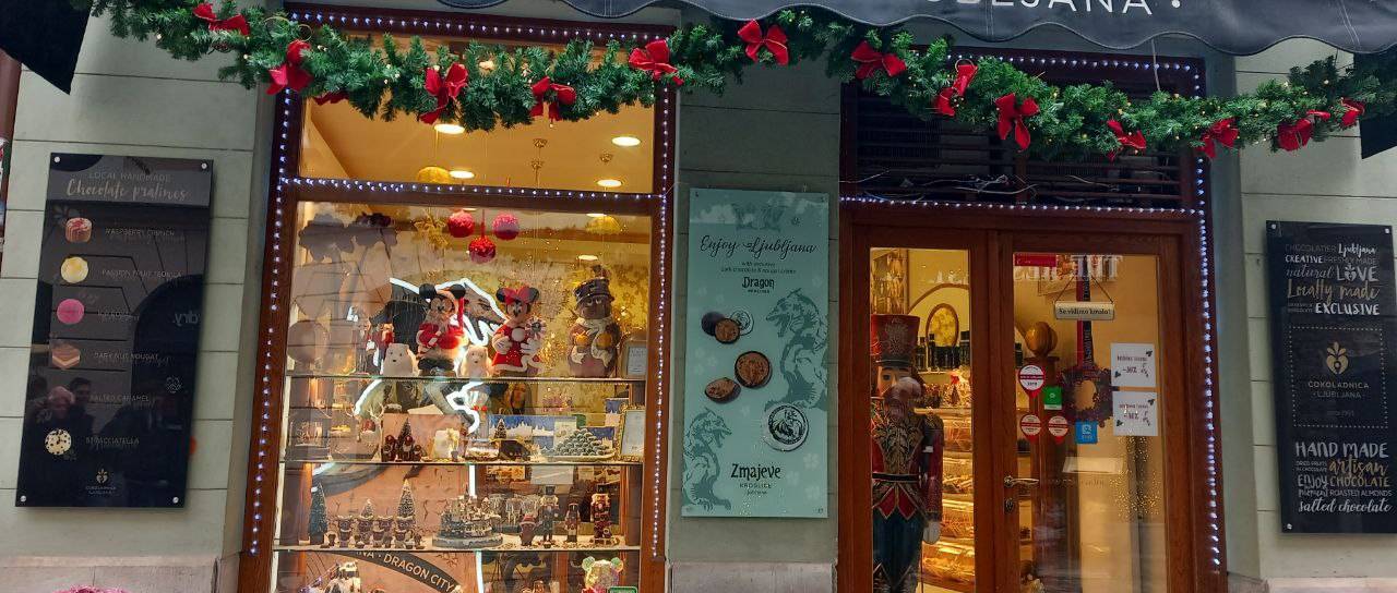 V Stari Ljubljani so praznično okrasili izložbe.
