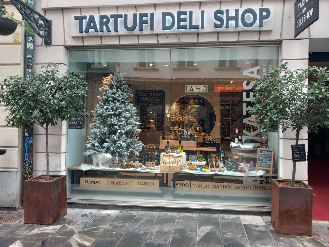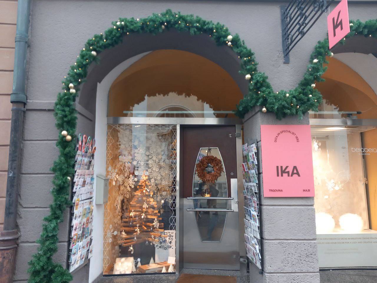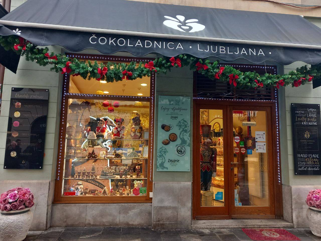 V Stari Ljubljani so praznično okrasili izložbe.