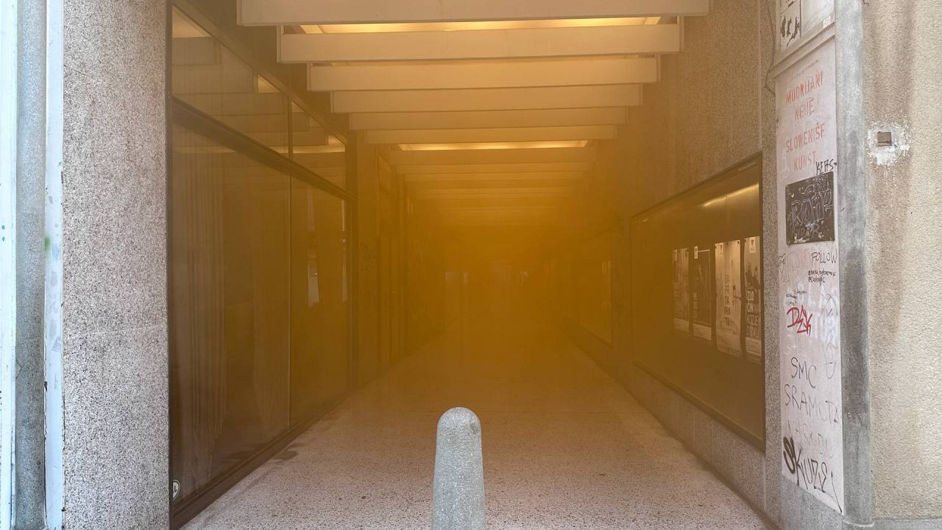 Če se odpravljate v središče Ljubljane, je morda najbolje, da se mu izognete. Nekatere ulice in podhodi je namreč zajel gost dim, ki je posledica dimnih bomb in bakel.