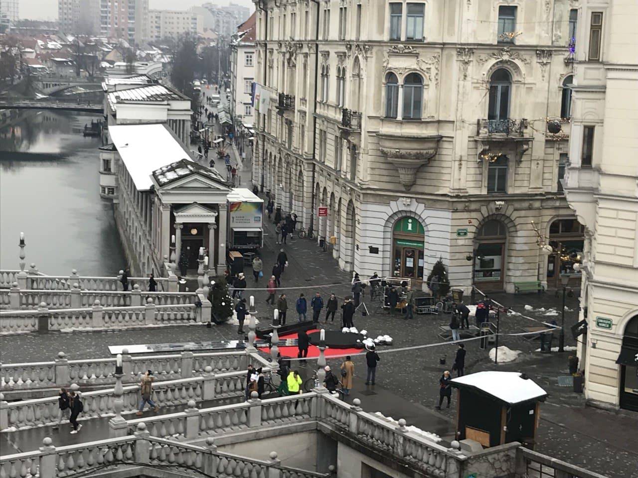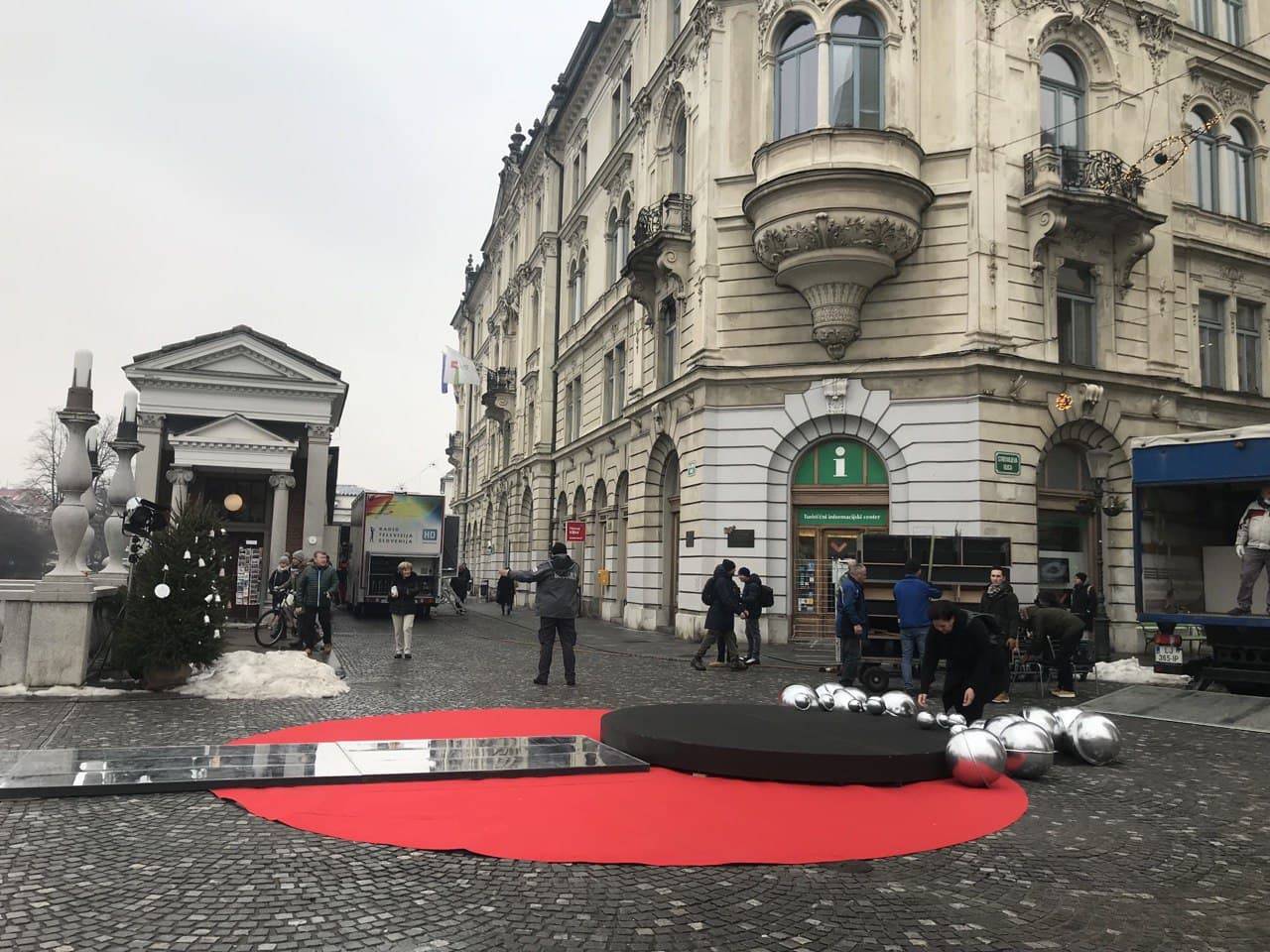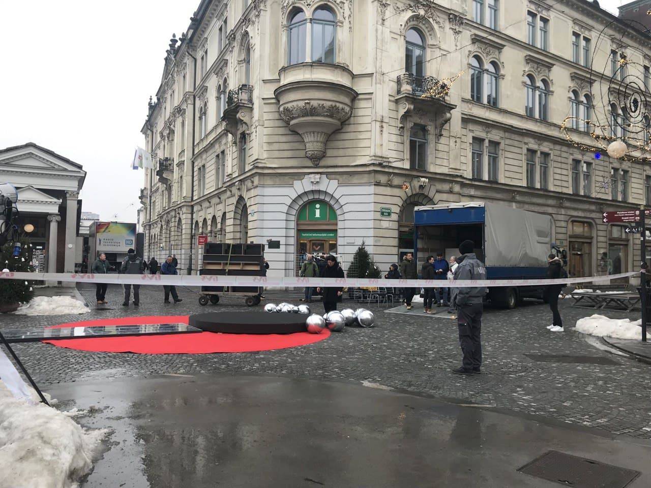 Izvedeli smo, da je središče mesta zagrajeno, saj Radiotelevizija Slovenija snema silvestrsko oddajo.