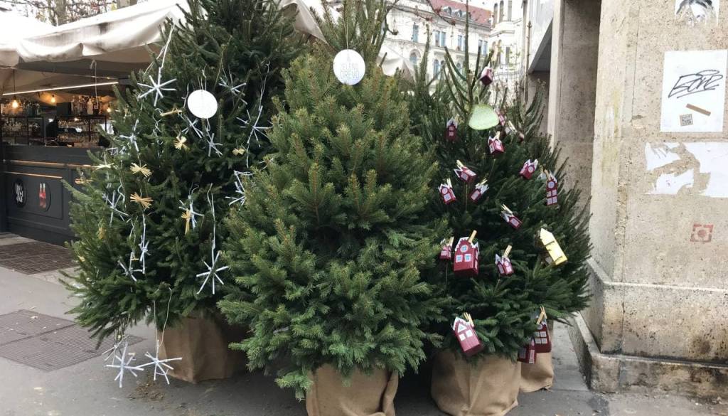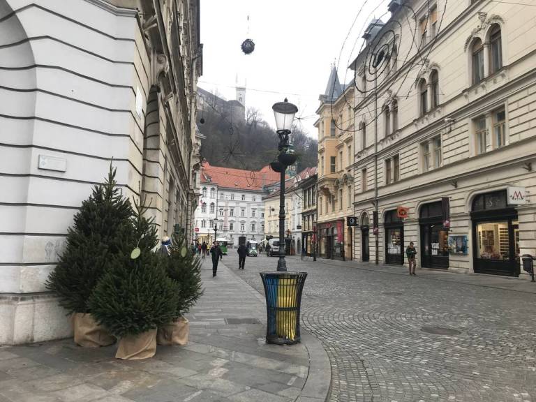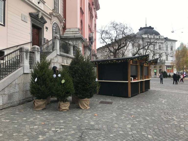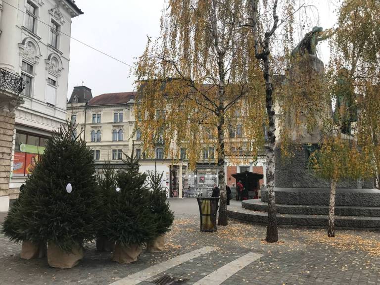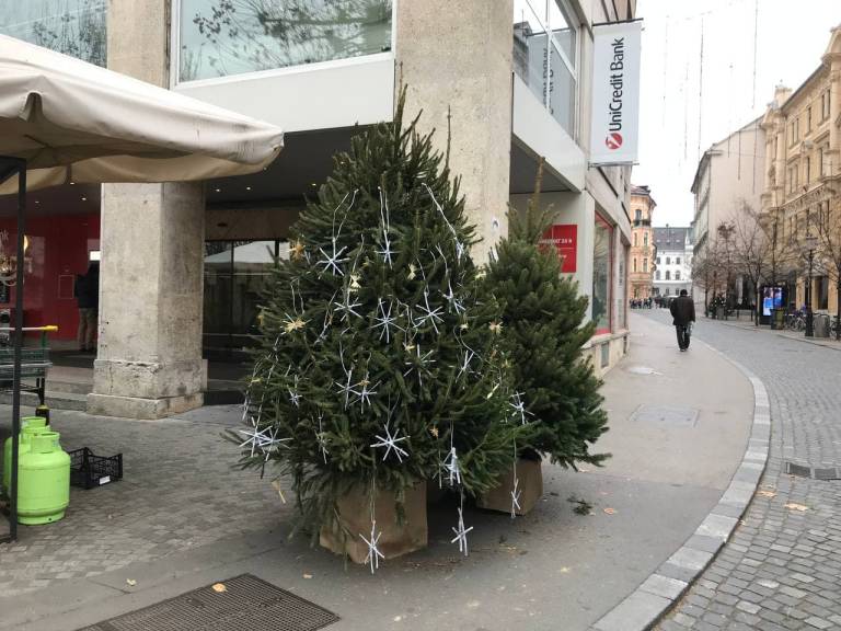 Po ulicah v središču mesta smo opazili več manjših smrečic. Mestna občina Ljubljana vabi meščane, da jih okrasijo.