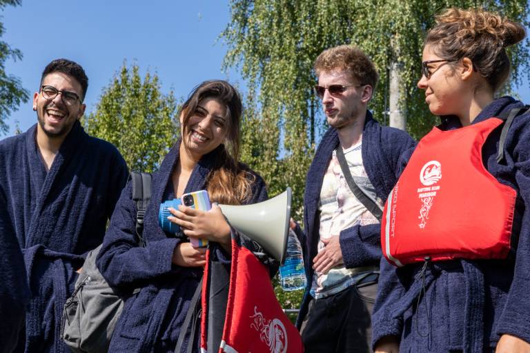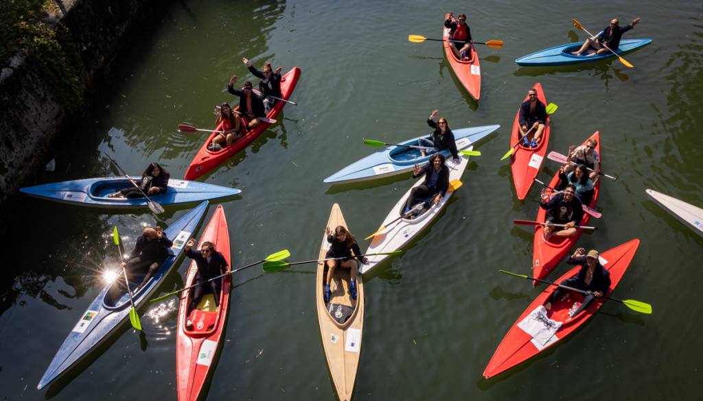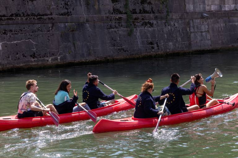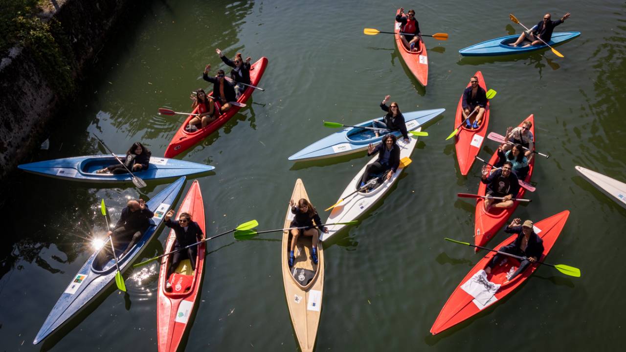 Bademantl dan je letos organiziran na Ljubljanici. Pri Baru Maček so se sodelujoči vkrcali na ladjico, kjer je potekala okrogla miza, nato pa so se zapeljali po Ljubljanici še s kanuji.