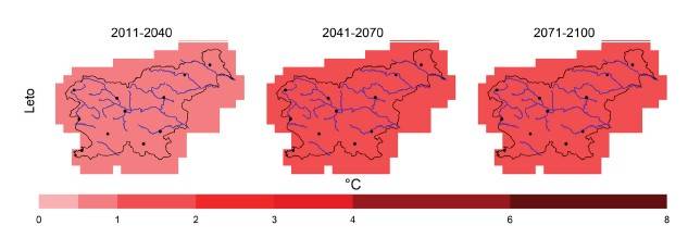 Agencija Republike Slovenije za okolje z rezultati simulacij za prihodnost napoveduje znaten dvig povprečne letne temperature zraka do konca 21. stoletja na celotnem območju Slovenije v vseh letnih časih.