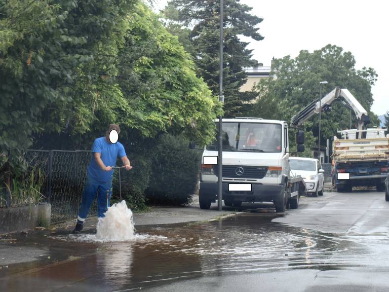 Kot da poškodovano vozišče ne bi bilo dovolj, ga je zalila še voda.