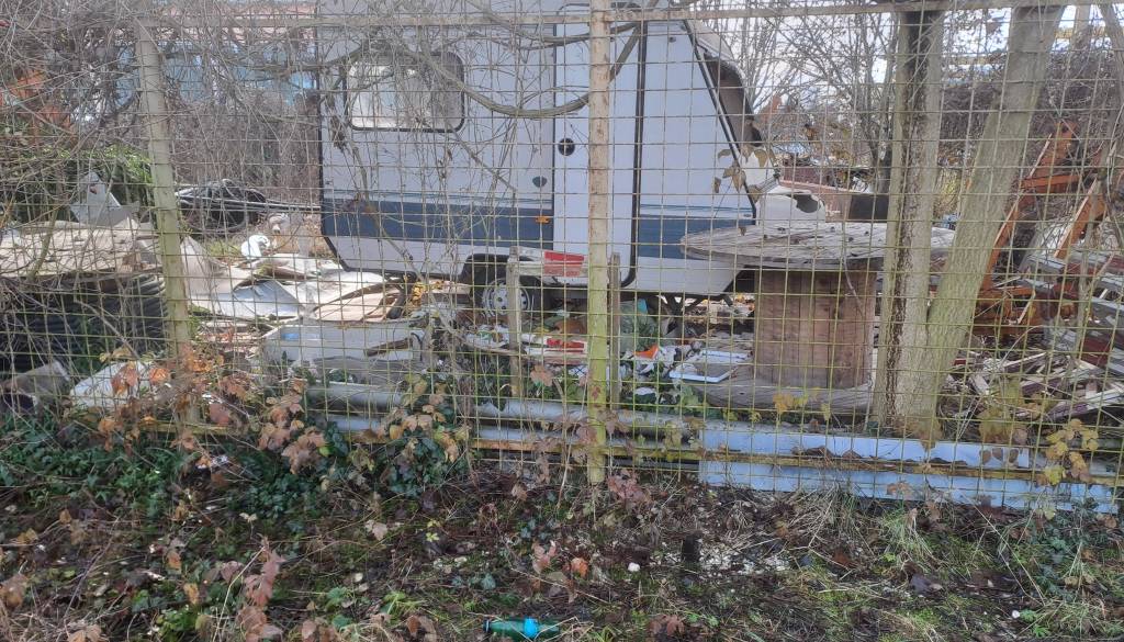 Bralec nas je opozoril, da je ob kamniški progi v podaljšku industrijskega tira za Bežigradom ograjen prostor, po vsej verjetnosti od Slovenskih železnic, kjer je med drugim tudi počitniška prikolica.