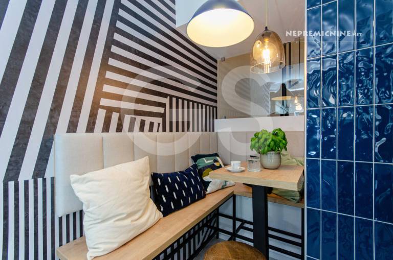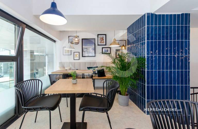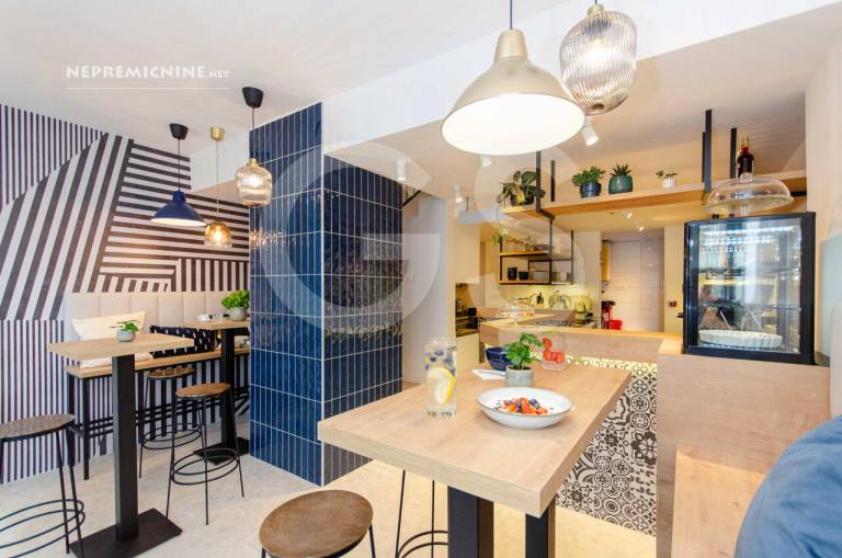 Lokal z 71,5 kvadratnega metra površine je v dveh etažah, omogočena pa je tudi raba zunanjih površin na podlagi najemne pogodbe.
